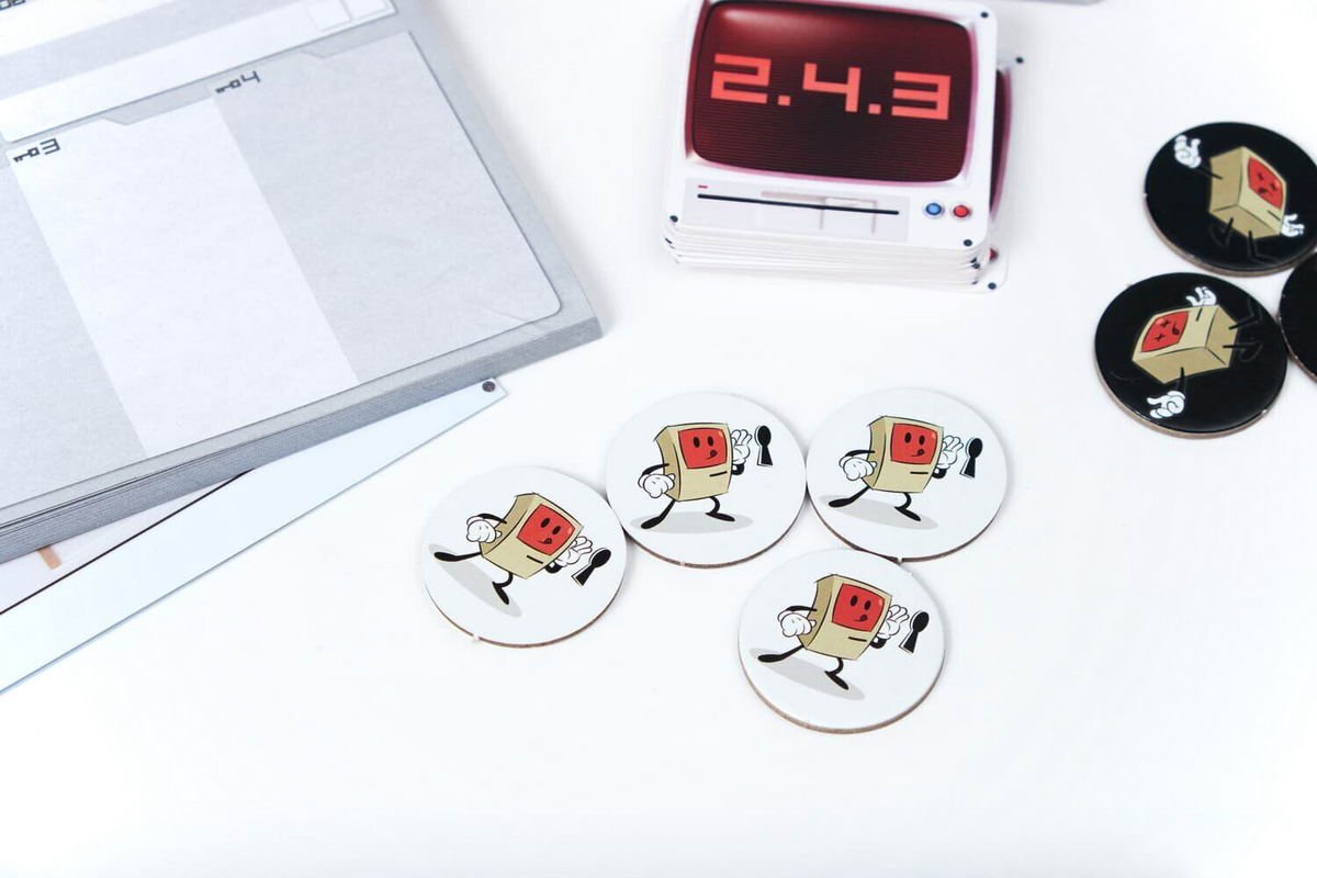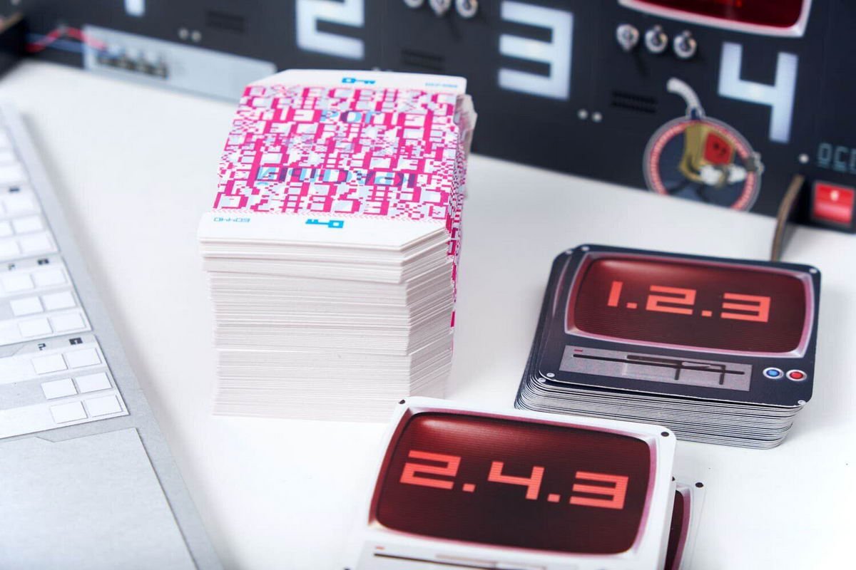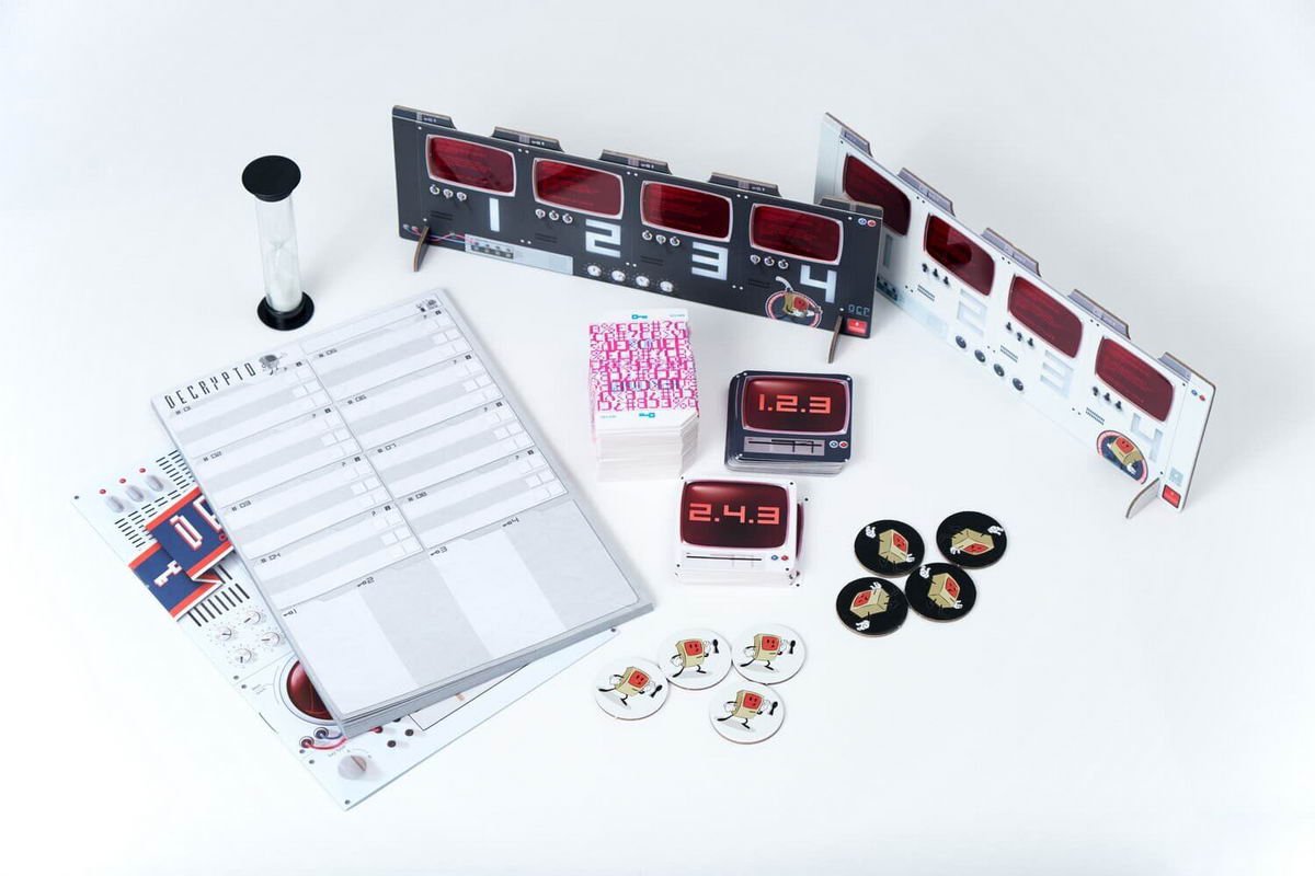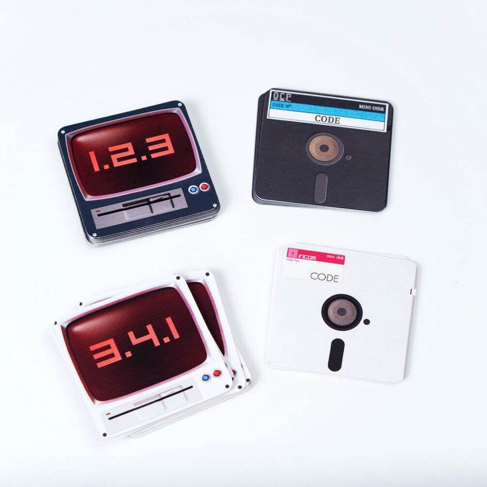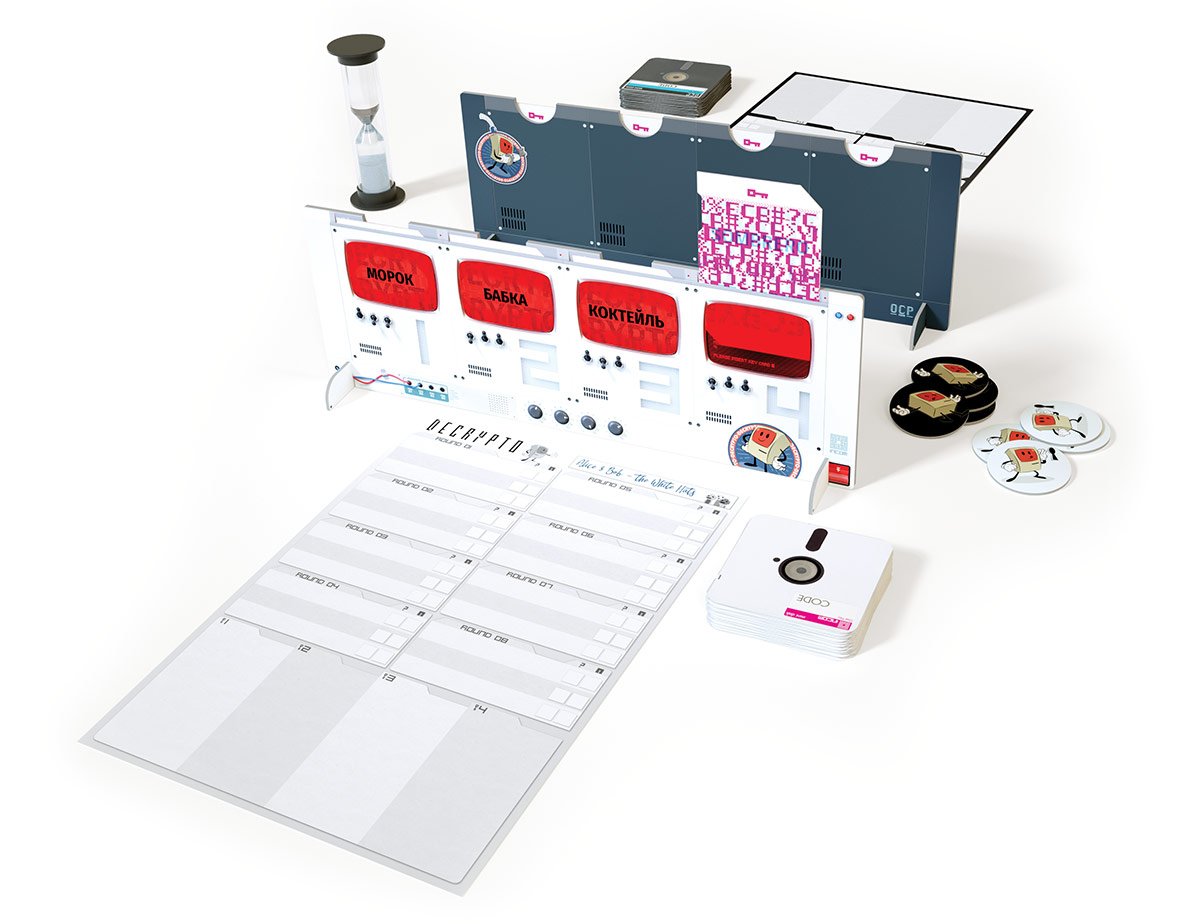Эта шпионская игра для компании заставит 3-8 игроков хорошенько пораскинуть мозгами и подарит взамен массу удовольствия. Причем наслаждение начинается уже со стильного и необычного оформления игры — ведь дешифровщикам нужно специальное оборудование. Каждая команда получит оригинальную ширму-компьютер с 4-мя экранами-окошками, куда нужно будет вставить по карточке в начале партии. Благодаря специальной плёнке буквенная абракадабра на каждой карточке превратится в слово. А первый участник команды получит карточку в виде дискеты с кодом (например, 1.3.4), который ему предстоит объяснить коллегам. Как? Зашифровав ассоциациями слова под этими номерами на их ширме.