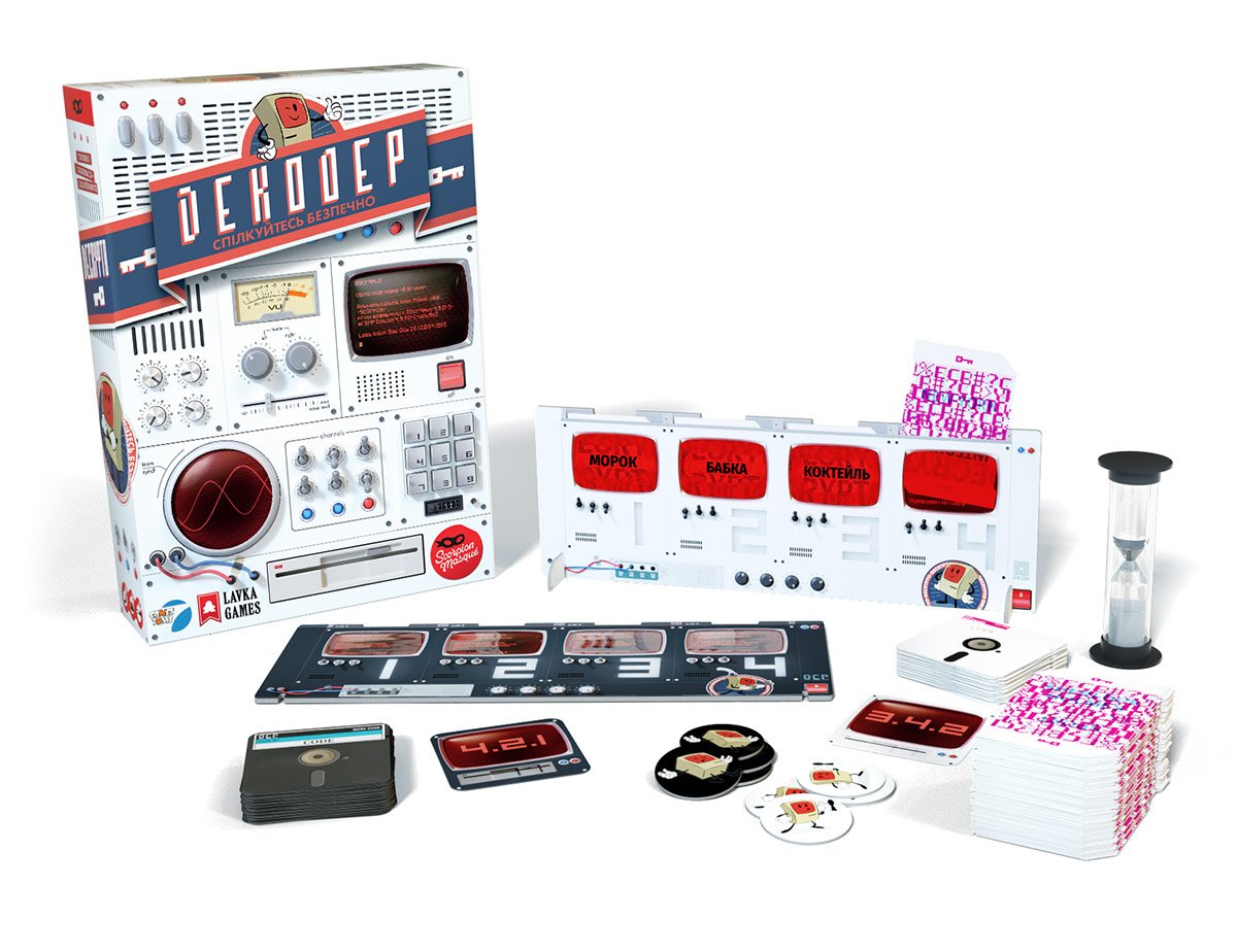 Команда видит исходные слова и может за 30 секунд догадаться, какой код загадан. А вот соперники слышат только слова-ассоциации, поэтому могут записать их себе в блокнот и в следующем раунде попробовать отгадать код с помощью дедукции. Если удастся — можно получить жетон Перехвата, а если ошибиться с кодом своей команды — жетон Помех. Два жетона перехвата — это победа, а два жетона помех — проигрыш. А так как параллельно нужно и передавать код внутри своей команды (причем так, чтобы конкуренты не поняли ассоциации) и пытаться отгадать шифры соперников (по крупицам собирая информацию), играть в «Декодер УКР» очень увлекательно. Натренируйте свою сообразительность и умение быстро понимать намёки так, чтобы ни одна зашифрованная информация не прошла мимо!