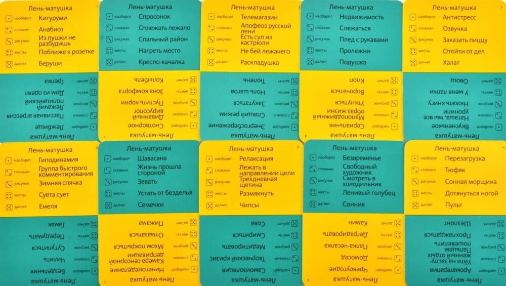 Но задания в «Экивоки. Пижамная вечеринка» посвящены трём определенным темам: лене-матушке, танцам со шваброй и тому, о чем мечтать не вредно, даже лежа на диване. Это то что нужно домашними уютными вечерами. Делитесь на команды (или играйте за себя) и за ограниченное время объясняйте коллегам по карантину/хозяйству/отпуску задания с карточек. Вас ждет как минимум шесть разных способов это сделать: чтение наоборот, синонимы, жесты, данетки, рисование и лепка из пластилина. А учитывая, что слова и фразы попадаются очень интересные, сделать это не так уж просто, но и очень увлекательно. Выключайте наскучивший телевизор и устраивайте незабываемую пижамную вечеринку!