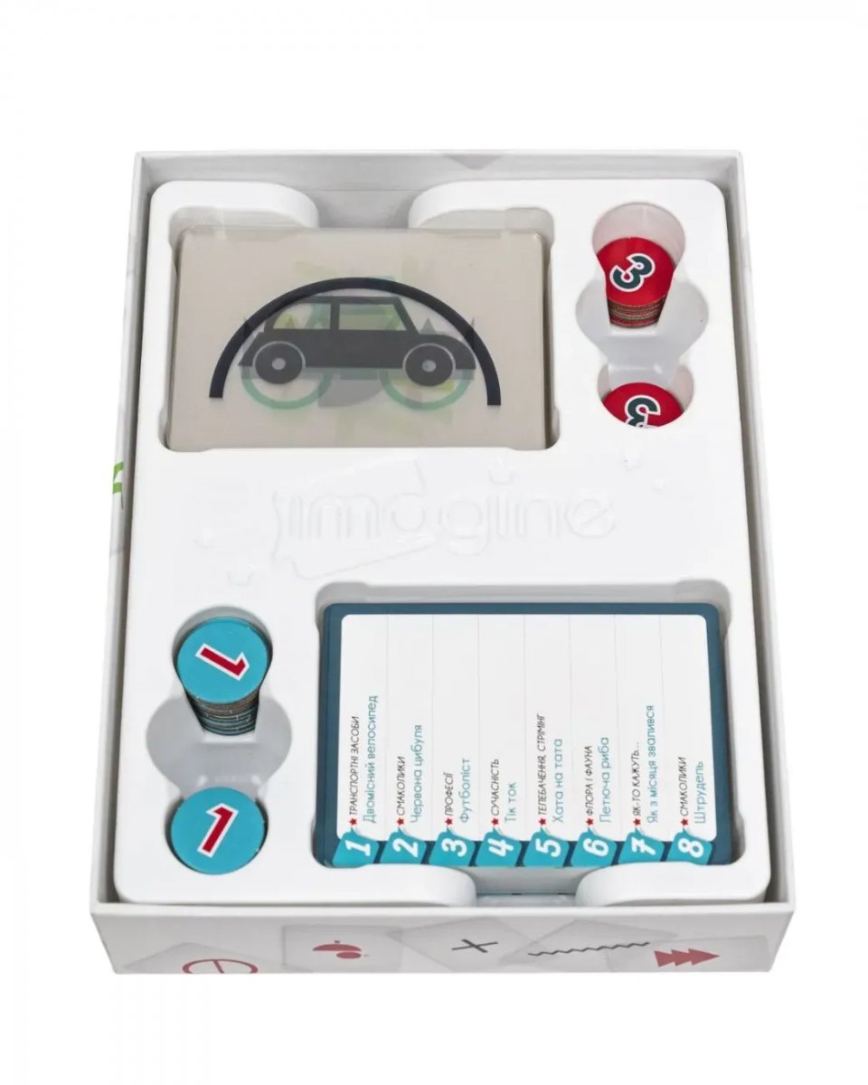 «Геометрія уяви» – це захоплююча асоціативна паті-гра, в якій учасники використовують свою уяву та спеціальні прозорі карти з різними позначками, візерунками і зображеннями для створення різноманітних образів, предметів або сценаріїв. Гра надає можливість розкрити творчий потенціал, розвиває просторове мислення, фантазію та співпрацю.