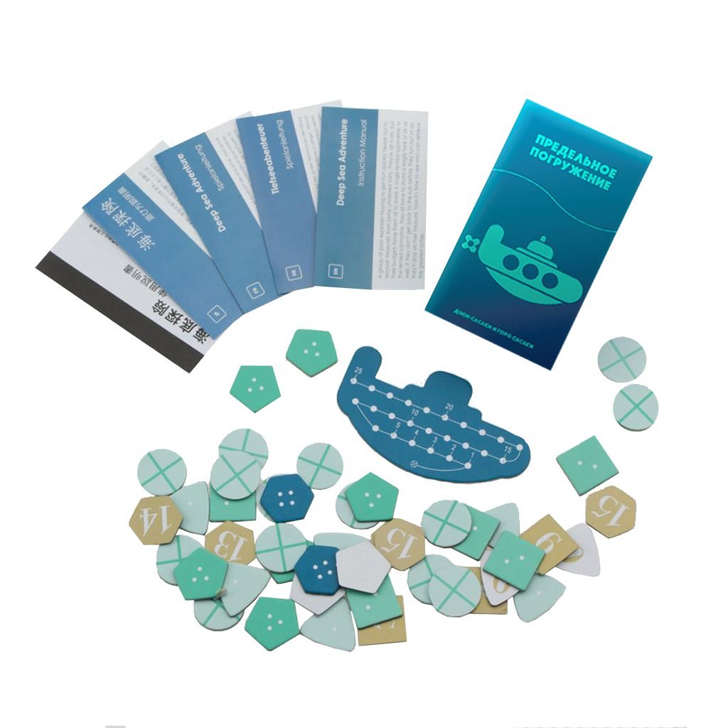 Ели наскребли на аренду субмарины и одного баллона с воздухом. Но что делать? Придётся быть хитрее и расчётливее соперников! Игроки с помощью бросков кубиков будут постепенно погружаться в толщу воды, передвигая свои фигурки по закрытым жетонам сокровищ. Чем ближе ко дну, тем больше ценность находок, а верхние - и вовсе могут оказаться консервной банкой. Казалось бы, греби всё что видишь и тащи наверх, но запас воздуха общий для всех водолазов и уменьшается каждый ход на количество жетонов, которые вы несёте. Есть все шансы просто не доплыть к подлодке под тяжестью трофеев. Ещё и конкуренты, видя ваши усилия, могут намеренно (аж пыхтя от натуги) расходовать воздух. Ведь раунд заканчивается либо от нехватки кислорода, либо когда все окажутся на борту. Тогда придёт время узнать, что же вы вытащили со дна, если успели оказаться на субмарине. Результаты трёх раундов покажут, кто зорко следил за действиями других подводников и смог найти баланс между жадностью и благоразумием. В азартной настольной игре «Предельное погружение», конечно, каждый сам за себя, но веселье, как воздух, на всех общее!