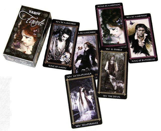 У каждой вещи есть обратная сторона, а на любое событие можно взглянуть под другим углом. Теневая колода Таро Легенд (Tarot Favole) от издателя Fournier Cards позволит вам подойти к любому раскладу нестандартно. Эти темные Таро с готическими иллюстрациями испанской художницы Victoria Frances (Виктории Франсис) приоткроют для вас завесу ночи, окунут вас атмосферу таинственного Средневековья и потусторонних сил. Красивая Башня и меланхоличное Солнце покажут вам другой взгляд на события и позволят быть максимально беспристрастными. Младшие Арканы (как и в любом Марсельском Таро) не прорисованы, а в Таро Легенд даже имеют другие символы мастей. Карты выполнены из плотного картона с качественным лаковым покрытием и удобно лежат в руке. Завораживающие иллюстрации, вдохновленные творчеством Лавкрафта, Эдгара По и Энн Райс, надолго притягивают внимание и настраивают на особенную атмосферу и теневую логику Таро Легенд (Tarot Favole).