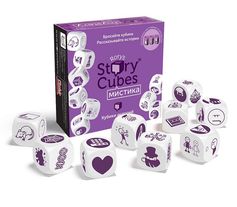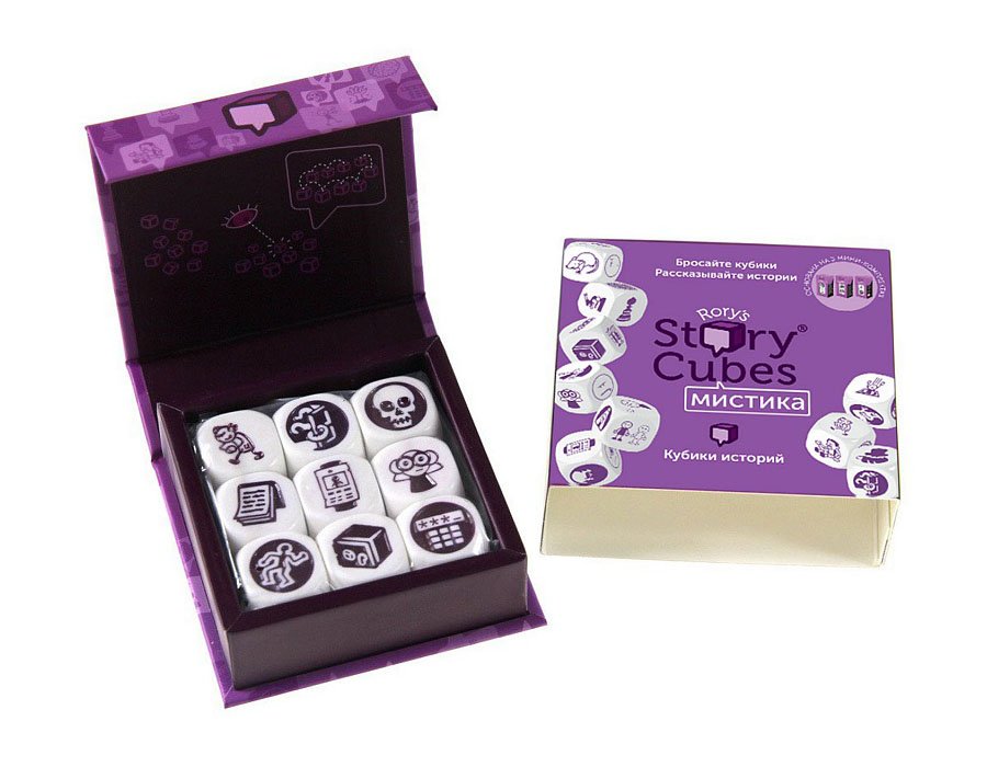 Целых 54 новых символа на девяти крупных кубиках помогут вам рассказать незабываемую страшилку. «Rory's Story Cubes. Mystery» можно купить как отдельную игру (бросать их, смотреть на выпавшие пиктограммы и импровизировать на ходу что-то достойное Хичкока), а можно смешать с другими наборами серии Рори или оригинальной игрой, чтобы стало ещё интереснее!