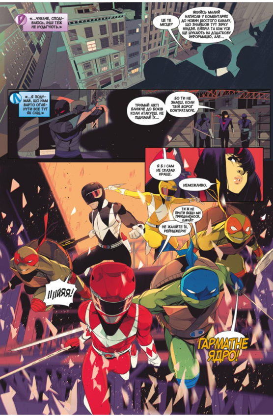 Це перша частина коміксу, де одночасно у бою зійдуться славнозвісні Могутні Рейнджери та веселі Черепашки-Ніндзя.