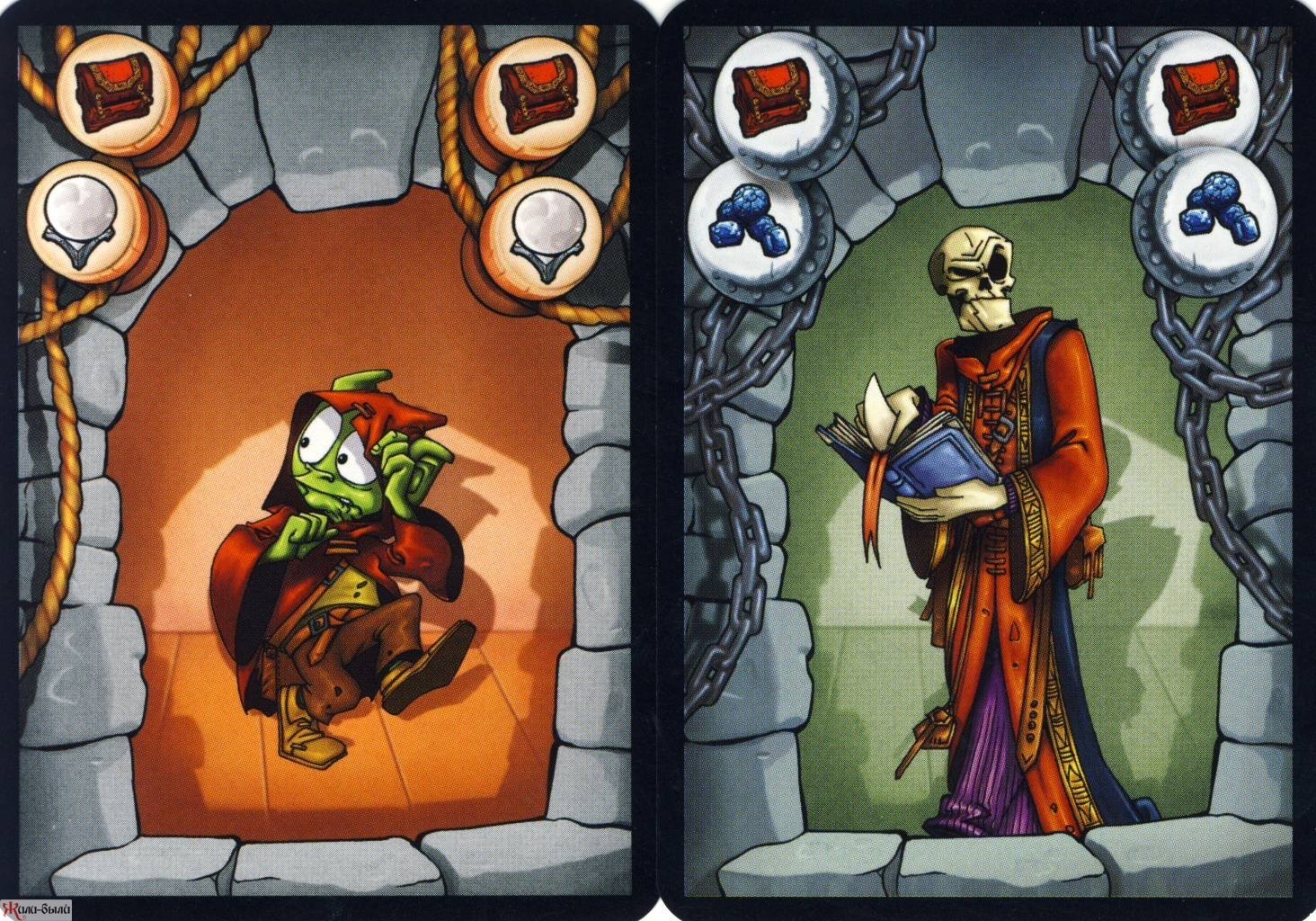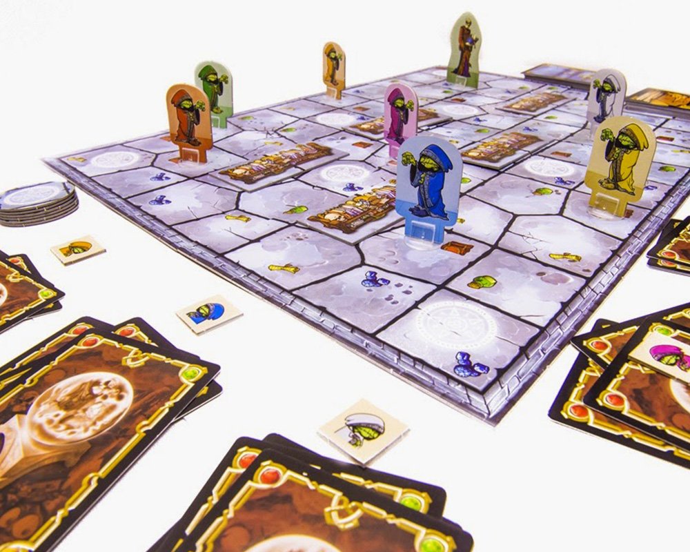 «Тишина должна быть в библиотеке.» А в развеселой настольной игре «Крагморта» тишину соблюдать нереально! Все дело в гоблинах - существах беззлобных, но очень пакостливых. Чего только стоит их идея украсть книги магии из под носа темного властелина Ригора Мортиса. И они не побрезгуют заложить менее расторопного товарища, чтобы смыться из-под взора хозяина. А игрок, попавший под Испепеляющий Взор, получает карту с проклятием. В зависимости от положения звезд на небе и настроения властелина кому-то нужно будет стоять на одной ноге, высунуть язык и не забывать мяукать перед каждым ходом. Смешно представить? Будет еще смешнее, ведь гоблинов в библиотеке много, перемещаться можно лишь по клеткам поля и только исходя из карт движений в наличии. Поэтому улизнуть от архимага не так уж просто. Можно использовать значки телепортов, но гарантия их действия весьма сомнительна. А тут еще другие гоблины норовят вытолкнуть тебя куда ни попадя, чтобы украсть больше всего книг и получить меньше всего проклятий. Упс, по-моему хозяин где-то рядом…