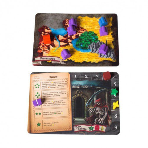 Эта дорожная мини-стратегия не занимает много места и содержит все необходимые компоненты для эпического противостояния 2-5 игроков. Вам предстоит отправиться в фэнтези-вселенную, где сражаются за господство 13 (!) уникальных рас, и возглавить одну из них. В распоряжении каждого правителя будут армии в виде фигурок миплов, деревянные фишки стартовых ресурсов разной формы, одна карта родной территории и возможность выбирать из 6 доступных действий. Для получения необходимых ресурсов вам предстоит ходить в походы на новые земли и патрулировать свои территории, торговать, а также рассчитывать провизию для армии.