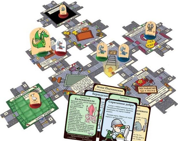 Новые, а также хорошо знакомые чудища будут гоняться за своими героями по всему игровому полю, чтобы поделиться с ними сокровищами и пасть от их блестящих мечей. Ну, почти. Не отказывайтесь от своего оптимизма и смело входите в подземелье: там вас ждет целых 200 игровых карт, куча разнообразных жетонов, удобные счетчики для подсчета уровней, картонные фигурки манчкинов и монстров, а также только один выход. Всего лишь нужно достичь десятого уровня и победить главного босса - раз плюнуть для хорошо экипированного шмотками храбреца, особенно, если рядом ваши верные друзья, готовые подрезать в нужный момент, подкинуть что-то непобедимое или забрать плохо лежащее.