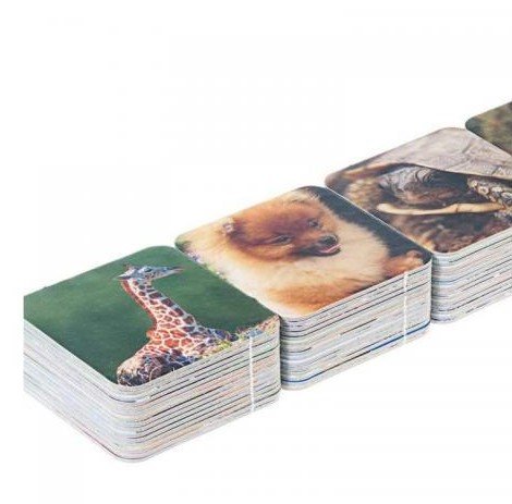 На 60 карточках из плотного картона спрятались фото одинаковых зверят. Переворачивая по две карточки, нужно собрать как можно больше пар.