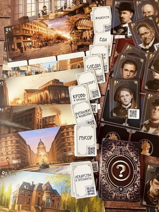Причем в игре «Место преступления: Прекрасная эпоха RUS» 1900 год прекрасно сочетается с современными технологиями. В коробке с игрой вы найдете планшеты локаций и больше 100 карт (персонажей, улик, особых предметов и загадок) с уникальными QR-кодами. Бесплатно скачав особое приложение, вы сможете отсканировать их и оживить в виртуальной реальности (например, на планшете или в VR-очках). Вам предстоит путешествовать по локациям, решать головоломки, опрашивать свидетелей, искать улики, строить и проверять свои догадки, чтобы распутать таинственные дела до истечения времени. И всё это в завораживающем коктейле из парижского ар-нуво и механики scan&play. Сможете ли вы найти ответ раньше комиссара полиции?