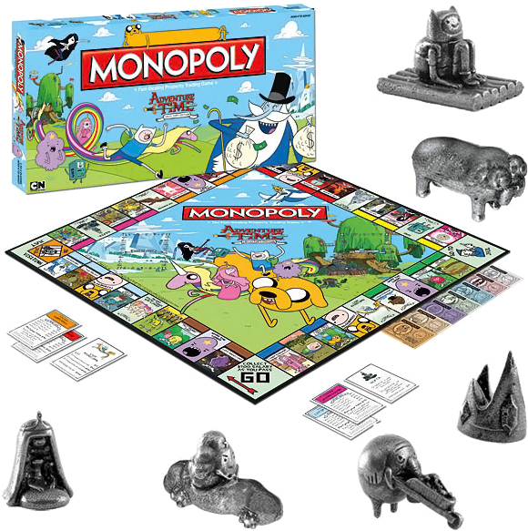 Мультсериал «Время Приключений» стал настолько популярен, что производитель Winning Moves удачно перенёс всю его атмосферу в плоскость всемирнопопулярной стратегии Монополия. Так в свет вышло издание Monopoly Adventure Time (Монополия Время Приключений) на английском языке!