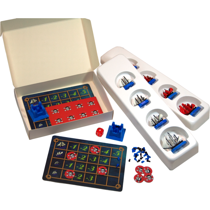 – двустороннее игровое поле (53х46 см)– 8 цветных кораблей в сборе