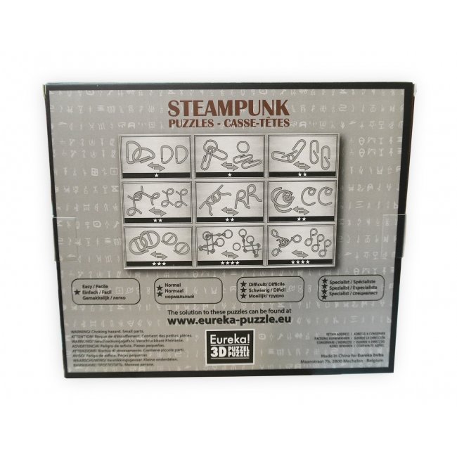 9 металлических головоломок четырех различных уровней сложности – от более легкого до самого сложного.