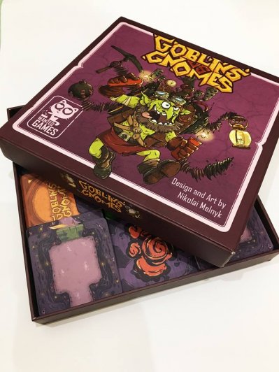 - Сделал игру Николай Мельник в 2015 году. Иллюстрировал ее он же. Он был вдохновлен "Саботером", который обожает по сей день, вот и решил сделать его лучше: поправить дизайн, уменьшить даунтайм, повысить реиграбельность, убрать надобность протекторов. Фактически, "Goblins vs Gnomes" - это красивый качественный отечественный ремейк, основанный на прекрасной механике.