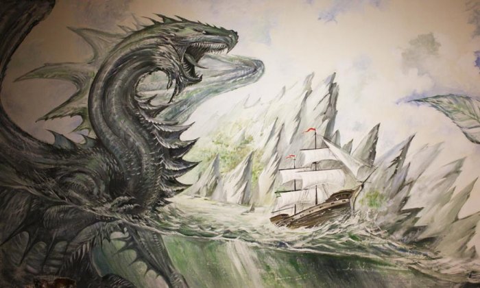А что самое потрясающее в отдельной комнате с драконом проходят самые настоящие D&D сражения! Роли и сценарии таких настольных битв накалены до предела и с воздуха вот вот посыпятся искры, а арт-дракон нарисованный на стене однажды точно откусит кому-нибудь голову! Мы заглянули только на минуточку, но успели рассмотреть огромное игровое поле поделеное на сектора, фигурки разных мистических персонажей и конечно же драконов. Бросилась в глаза вымощеная брусочками от Дженги стена разрушенной крепости.. и ещё много чего не совсем понятного на первый взгляд...