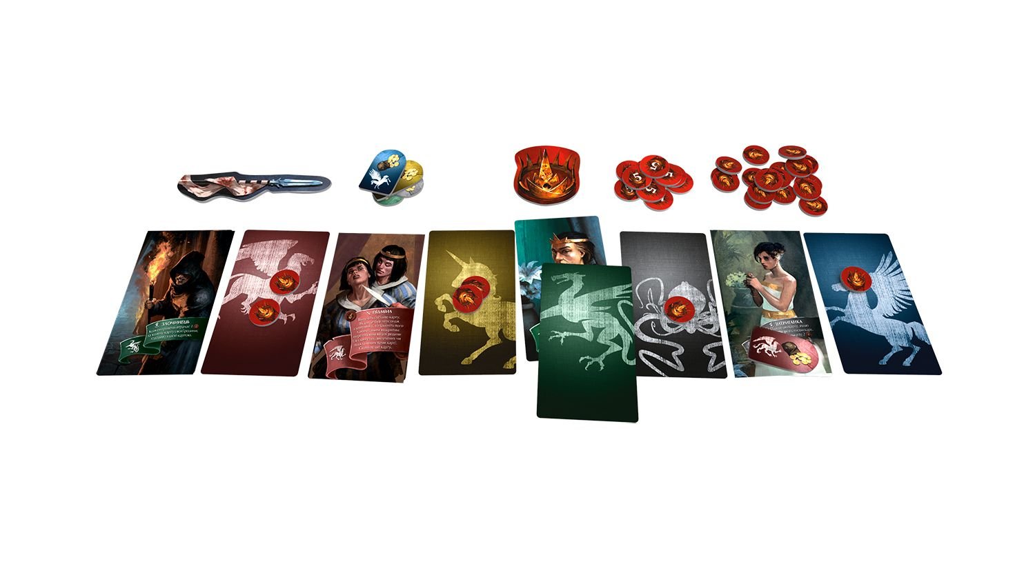 В этой украинской локализации вас ждёт ряд дополнительных персонажей и интриг — то есть по 11 абсолютно новых карт для каждого из 5 игроков, причем добавлены правила для игры вдвоём. Также в комплекте вы найдете все необходимые жетоны для полноценной игры, поэтому в «Орифлама. Полум'я інтриг (Oriflamme: Ablaze UA)» можно играть, даже если вы сражаетесь за престол Франции впервые. А именно этим игрокам и предстоит заниматься. Вот только орудием борьбы станут не мечи и доспехи, а интриги и карты.