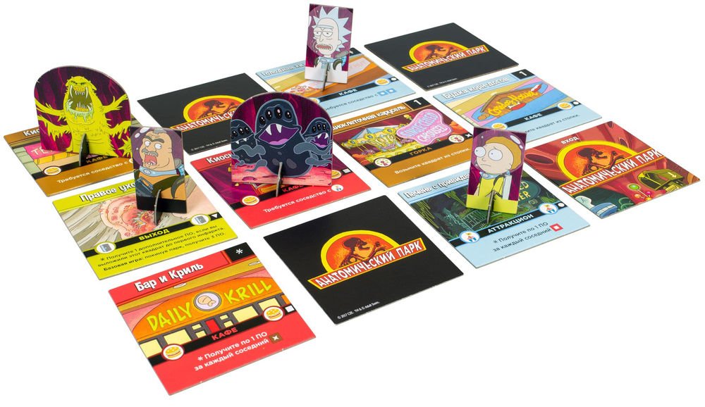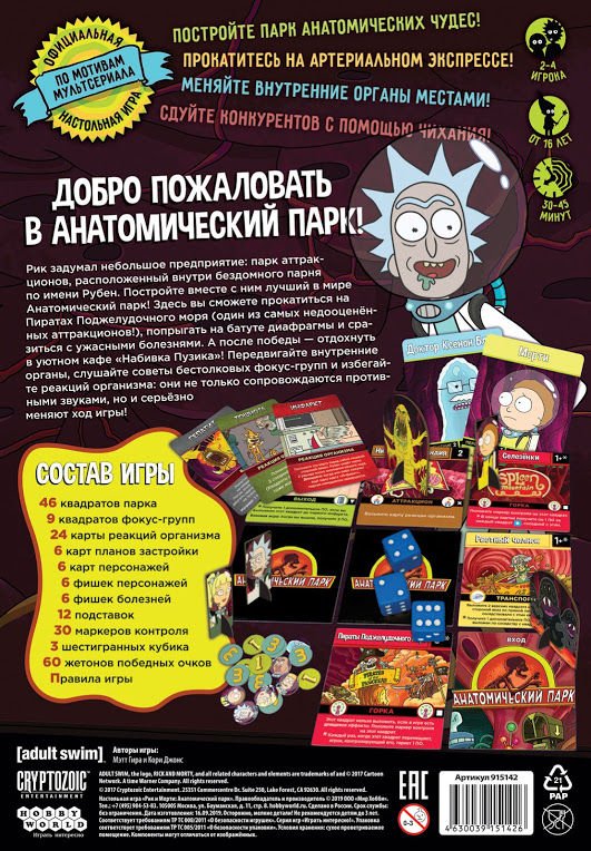 Настольная игра «Рик и Морти: Анатомический парк» позволит вам все эти чудаковатые развлечения и даже больше! Благодаря локализации от Hobby World эта новинка 2019 года подарит всем фанатам «Рика и Морти» возможность не только заглянуть внутрь Рубена, но и самим заняться проектированием этого странного (и одновременно великолепного) парка развлечений.