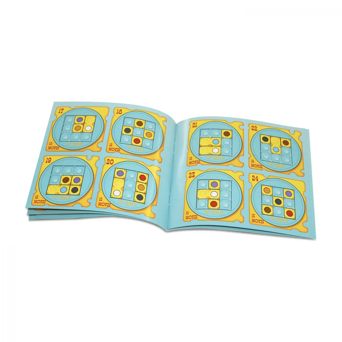 Игра включает буклет с 50 заданиями и 7 симпатичных кубиков сыра с разноцветными мышатами внутри. Пластмассовый чеддер следует разместить на игровом поле с ячейками, как указано на картинке задания, но обязательно — хвостами мышек вверх. А потом, перекатывая кусочки сыра по полю, нужно перевернуть всех мышат, чтобы показались их мордочки. Причем сделать это предстоит за определенное количество ходов, что на более сложных уровнях покажется непростым, но очень интересным заданием!