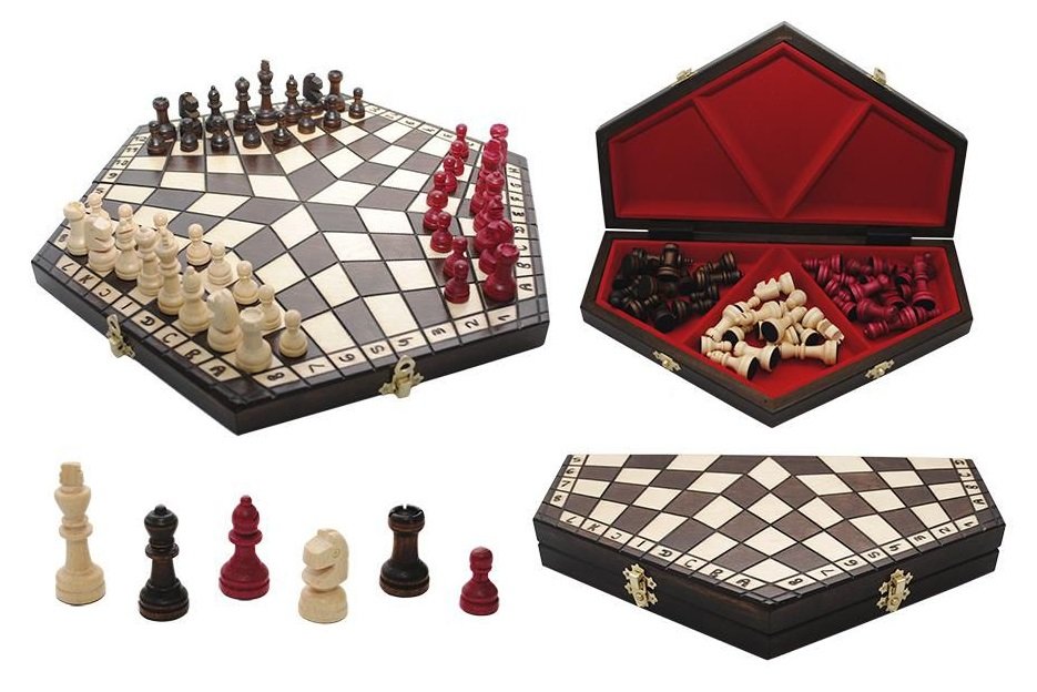 За свою многовековую историю шахматы стали классикой настольных игр, но также обзавелись множеством вариаций! Шахматы «На троих» — вариант этой классической стратегии для игры втроём. А польская компания Madon также выпустила туристические шахматы «На троих», которые можно легко брать с собой.