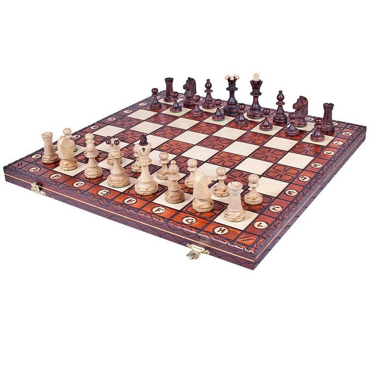 В тон фигурам оформлена и сама доска (ширина 41 см), она также украшена резьбой и выжиганием по всему периметру, что делает шахматы Junior отличным подарком и красивой деталью интерьера. Это любительские шахматы, но их можно купить и для тренировок, и для семейного досуга. Они будут радовать глаз на протяжении множества захватывающих партий.