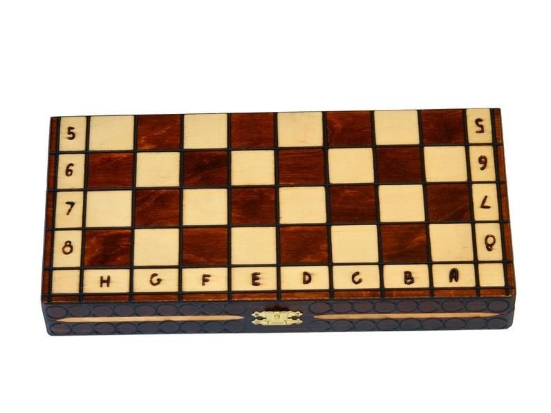 Шахматы Royal-30 — это набор ручной работы от известного польского производителя Wegiel с шахматной доской 29 на 29 см. Они изготавливаются из экологически чистой древесины (преимущественно — бука) без использования детского труда. Доска украшена выжиганием, а внутри поделена на два отсека с велюровым напылением для хранения фигур. Сами фигуры выполнены в необычном европейском дизайне Роял с королем высотой 6,6 см, а снизу подклеены войлоком для защиты доски. Эти шахматы небольшого размера в наивном стиле и качественном исполнении могут стать первыми шахматами вашего ребенка и украшением вашей домашней коллекции игр.