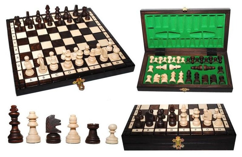 Шахматы Турнирные туристические от польского производителя Madon представляют собой компактный шахматный набор в классическом «турнирном» оформлении. Фигуры выполнены в стиле «Стаунтон» (именно такой дизайн ФИДЕ рекомендует использовать на соревнованиях) и изготовлены вручную из карельской березы в двух цветах: темно-коричневом (практически черном) и натуральном светлом цвете. В тон им оформлена складная доска шириной 27 см, которая, кроме того, размечена резьбой по дереву и выжиганием, а также содержит органайзер для фигур. Небольшие размеры позволяют взять набор «Шахматы Турнирные туристические» с собой в дорогу и купить детям, а низкая цена и долговечность порадуют всех обладателей.