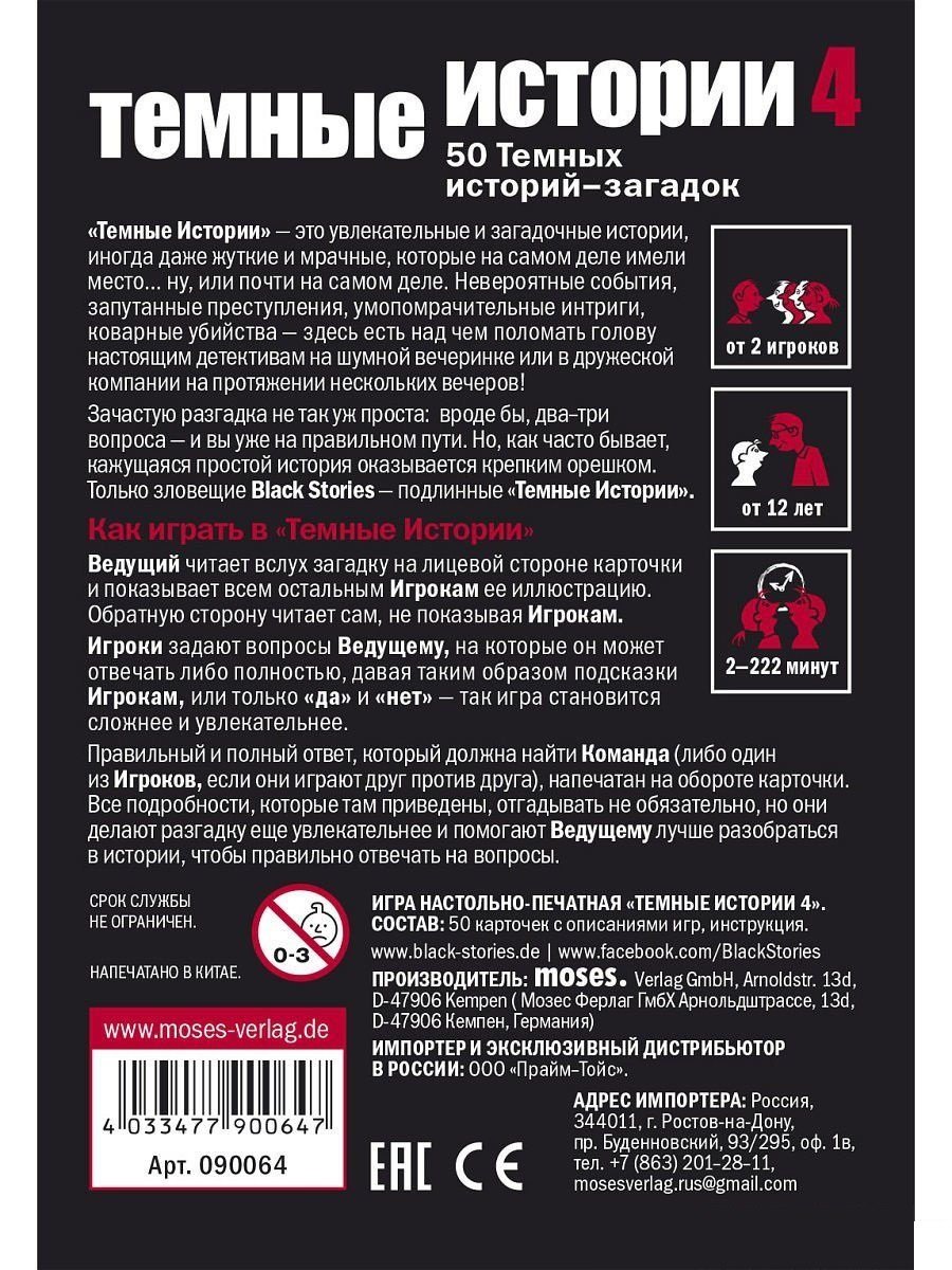 Настольная игра Тёмные Истории. Часть 4 (Black Stories. Part 4)