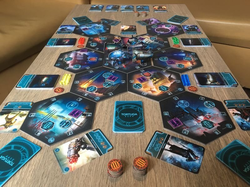 Кредиты и маневры дают разнообразные карты (наемники, улучшения и даже побитые монстры), которыми игроки будут пополнять свою колоду за определенную стоимость. Но «Тортуга 2199» — это не обычный колодострой. Кроме декбилдинга вас ждет конкуренция за контроль территорий, да и сам игровой процесс не похож на спокойный пасьянс. Игрокам предстоит постоянно принимать непростые решения, а составное поле и целых 5 колод рынков сделают каждую партию уникальной. Вишенкой на торте станет стильное оформление и игровое поле, уже похожее на космический корабль.