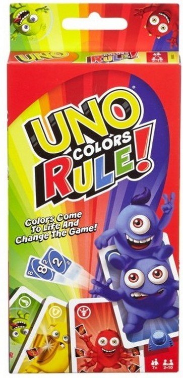 Ваша колода карт «Уно» поистрепалась за многолетнюю историю счастливого времяпрепровождения? Самое время приобрести новую яркую версию этого карточного хита – «UNO Colors Rules (Уно Игра в цвета)», и тем более - если вы до этого не играли в «Уно»!