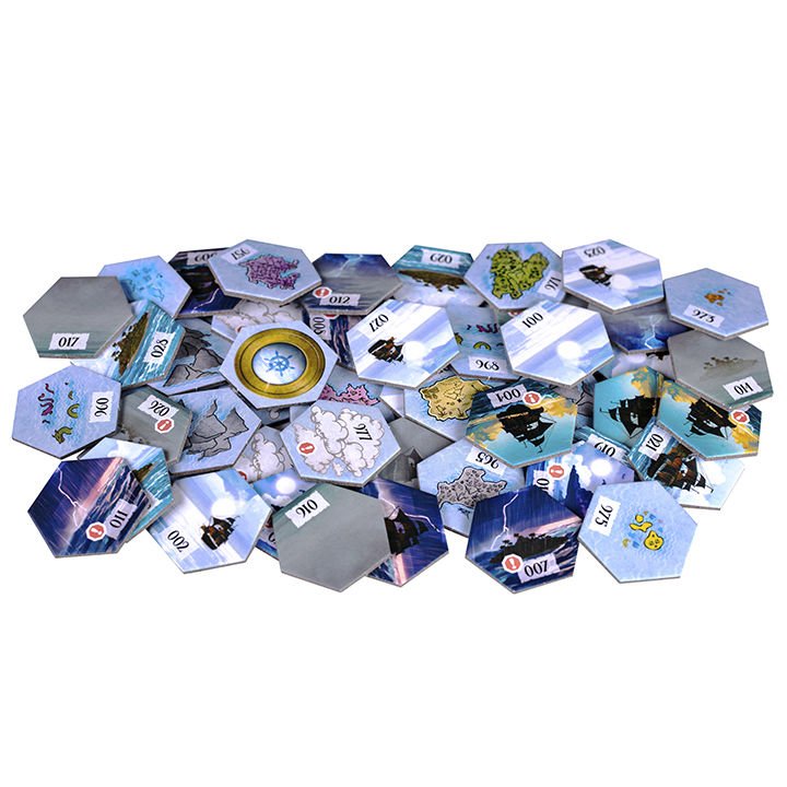Программа будет показывать вам начальную расстановку компонентов, отсчитывать время и вести по сюжету, причем, как и во всех играх с «перекрестками», ваши действия будут влиять на дальнейшее развитие сценария, поэтому можете проходить его несколько раз. Но самое интересное будет происходить на поле, где постепенно, прокладывая курс, игроки будут открывать новые гексы моря, ввязываясь в разнообразные приключения и собирая сокровища. Вам предстоит быстро распределять действия, выставляя фигурки героев в книге локаций, и выполнять их, проходя проверку на кубиках.