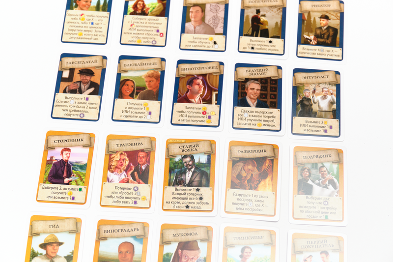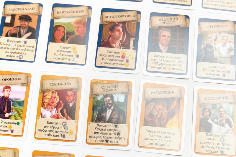 Эта коробка представляет собой купаж из 40 летних и 40 зимних посетителей вашей винодельни, которые заставят вас сосредоточиться на качестве производимого продукта и не дадут бездумно гнаться за победными очками. Этот альтернативный набор карт с совершенно другой рубашкой заменит карты из базового набора игры и 4 карты из дополнения Тоскана (которое входит в полное издание). С дополнением «Виноделие: Долина Рейн» вы сможете освежить ваши вкусовые рецепторы во время потребления любимой игры и попробовать совершенно новые стратегии!