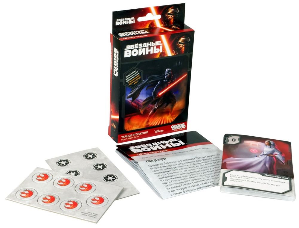 Вы снова чувствуете острую потребность пересмотреть любимую киносагу Джорджа Лукаса? Или ищите, с чем бы зайти на чай к поклоннику «Star Wars»? Обратите внимание на компактную коробку с карточной игрой «Звездные войны. Тайное вторжение» - в ней заключена большая Сила! А точнее - 17 карт с потрясающими иллюстрациями, которые развернут на игровом столе операцию по спасению Леи Органы со Звезды Смерти.