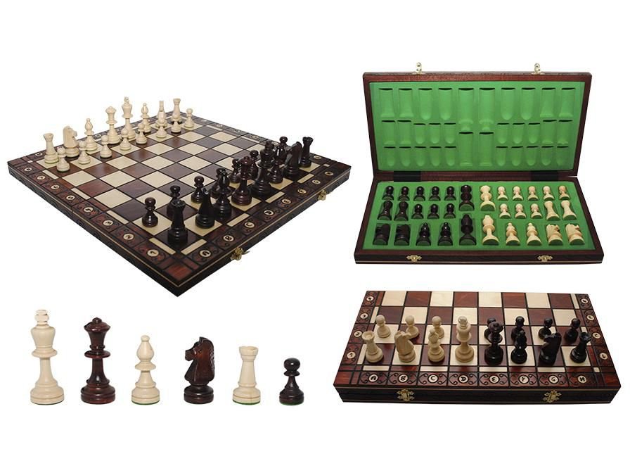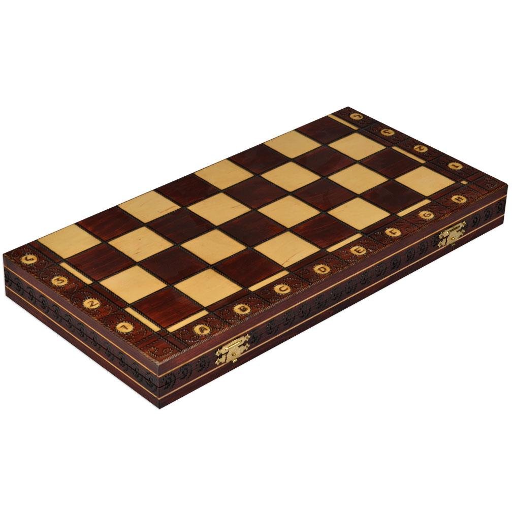 Якщо вам хочеться купити на подарунок класичні шахи середнього розміру, але в елегантному оформленні, то шаховий набір CONSUL від польського виробника Madon — це те, що вам потрібно! Даний комплект складається з еталонних стаунтонівських фігур ручної роботи з деревини платана та елегантної шахівниці, прикрашеної різьбленням і випалюванням. Всередині є органайзер з повстю, а з боку коробки — два золотих замочки, тому шахи Consul можна легко брати з собою. Розміри фігур (король 90 мм) і дошки (48 см) відповідають турнірним шахам No5, які дуже любив Гаррі Каспаров. Даний шаховий набір порадує як новачків, так і професіоналів!