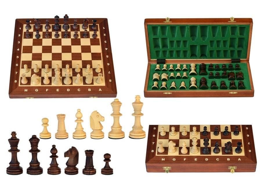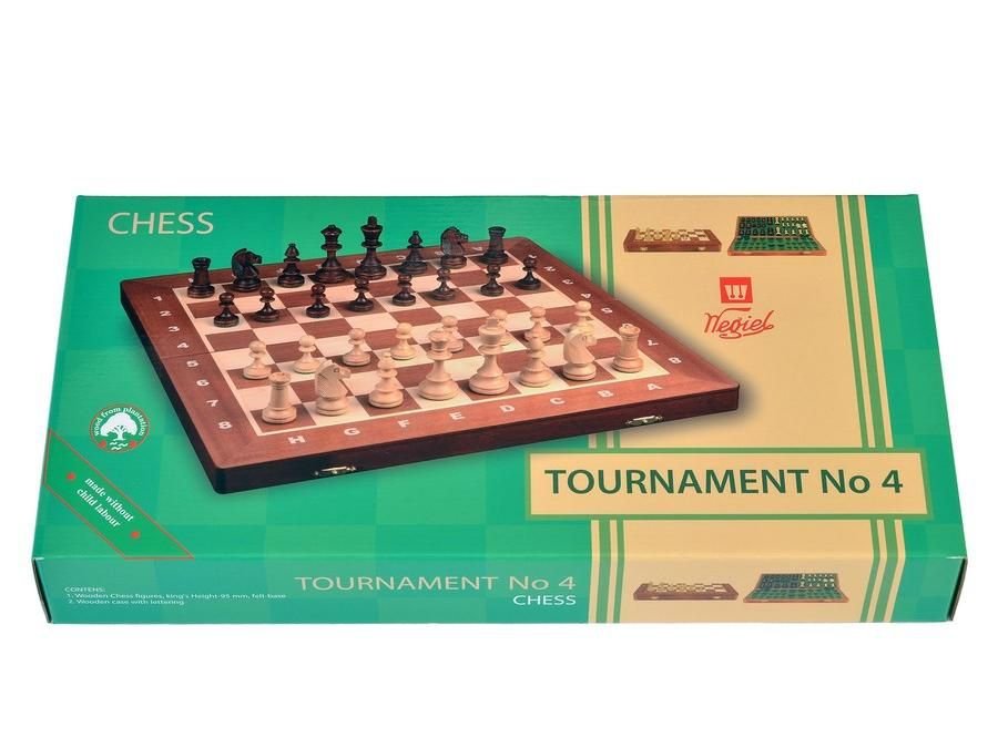 Шахи від польського виробника Weigel поставляються на міжнародні турніри та цінуються професіоналами по всьому світу. А тепер і у вас може з'явиться такий шаховий набір. Шахи No4 Intarsia — найменші за розміром серед турнірних шахів, тому з ними буде зручно грати як самим юним гросмейстерам, так і тим шахістам, які люблять брати гру кудись з собою. Фігури з королем висотою 8 см виконані в дизайні Стаунтон, який понад півтора століття вважається еталоном у світі шахів. А дошка, шириною 41 см, зроблена інкрустацією дерева по дереву з екологічно чистого матеріалу. Всередині також є вкладка з велюровим напиленням для дбайливого зберігання фігур. Турнірні шахи No4 Intarsia без сумніву підкорять вас своєю простотою і високою якістю!