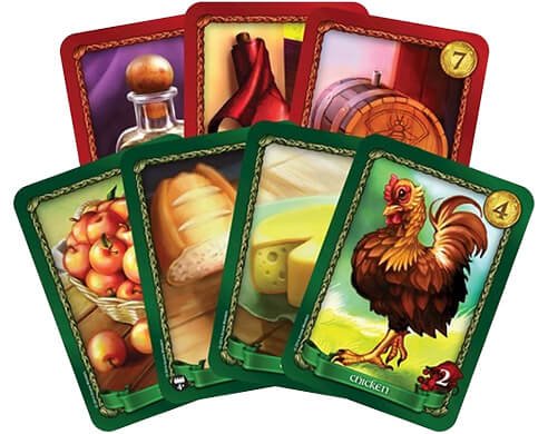 - 216 карт товарів.- 110 жетонів монет.