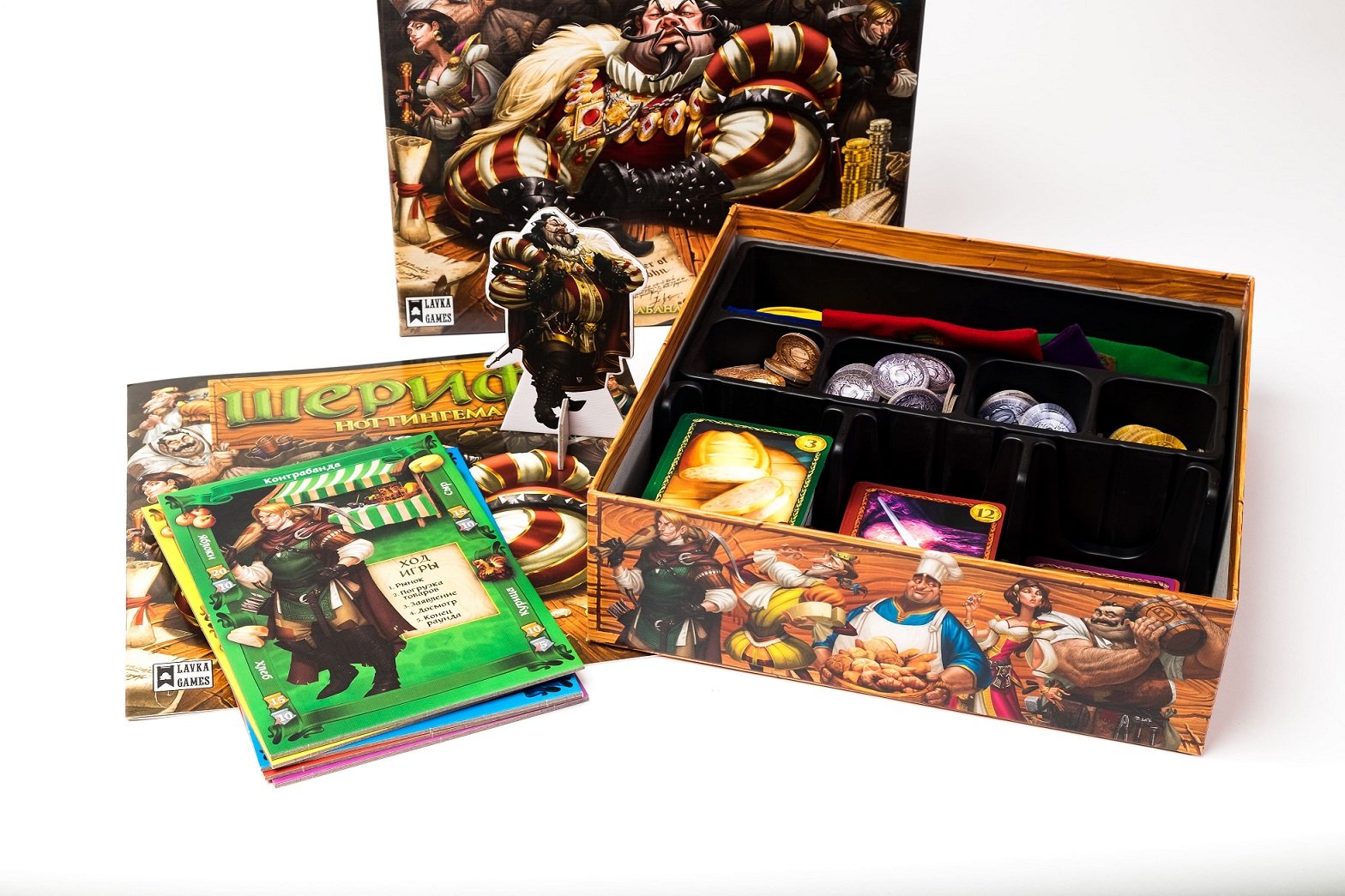 І навіть якщо вам дуже хочеться стати порядною торговцем, для перемоги просто доведеться хоч раз збрехати. Адже перець, шовк, медовуха і зброю визнані контрабандою та вилучаються митниками, а штрафи злетіли до небес. Що залишається робити чесним купцям / контрабандистам, щоб вижити в таких умовах? Блефувати, підкуповувати і будувати хитромудрі плани! У барвистій картковій грі «Шериф Ноттінгема» від 3 до 5 гравців знайдуть різнокольорові оксамитові мішечки для ввезення благ, 216 ілюстрованих карток дозволених і заборонених (але більш цінних) товарів, індивідуальні планшети з торговим прилавком, купу золотих монет і фігурку Шерифа.