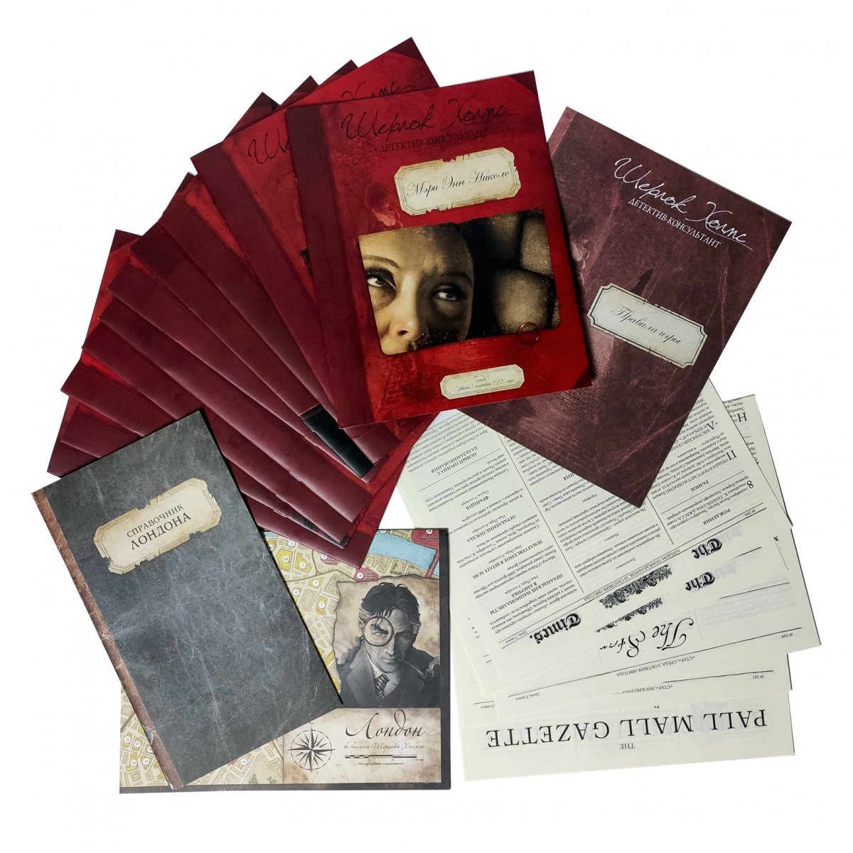 ючения» на вас чекає 10 свіжих справ, які по зубах тільки істинним слідчим. Не дарма всі частини даної детективної гри входять в 50-ку кращих тематичних настолок, хоча перший випуск (про вбивство на Темзі) світ побачив близько 40 років тому. У цьому локалізованому виданні у вас буде все необхідне для захопливого розслідування: 10 книг з описами справ, добірку випусків Таймс з тогочасними подіями, довідник з адресами жителів і організацій британської столиці та двостороння карта з 5 частинами Лондона і Вайтчепелом. Всі ці текстові матеріали не тільки багато в чому засновані на реальних фактах і перенесуть гравців в сучасність Шерлока Холмса завдяки атмосферному оформленню і продуманим деталям, а й дадуть вам безліч важливих зачіпок, доказів і способів розкрити таємничі справи.