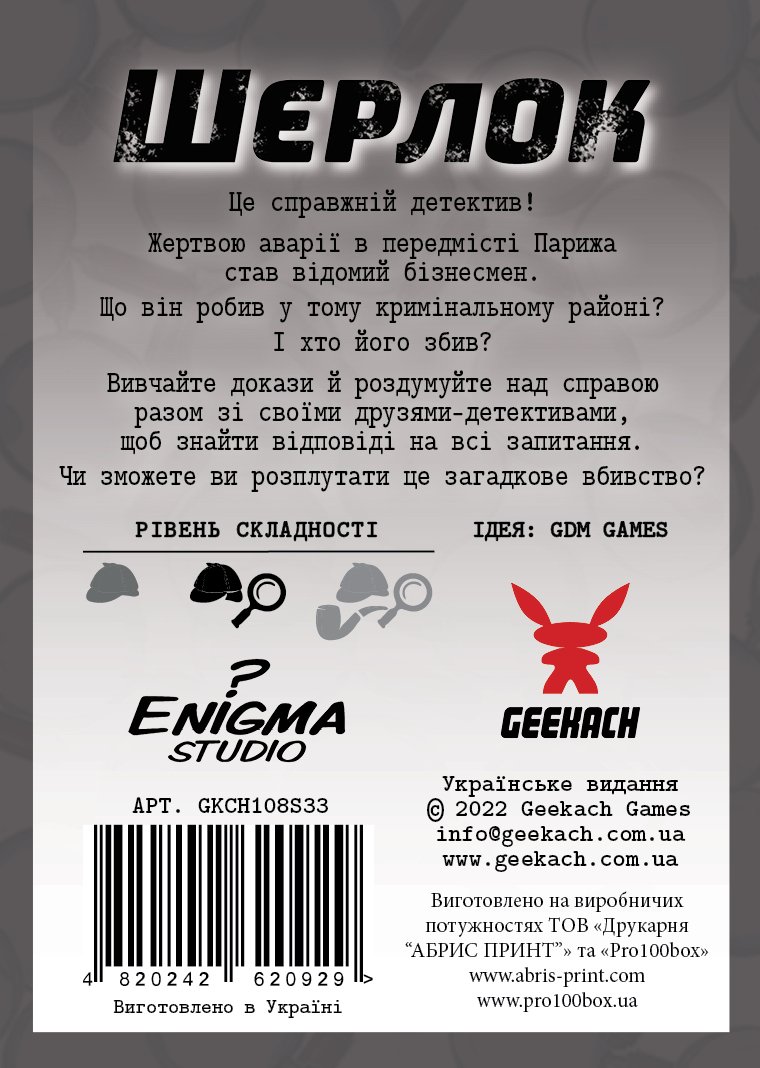- Тривалість партії: 1-2 години інтелектуального занурення для 1-8 дослідників
