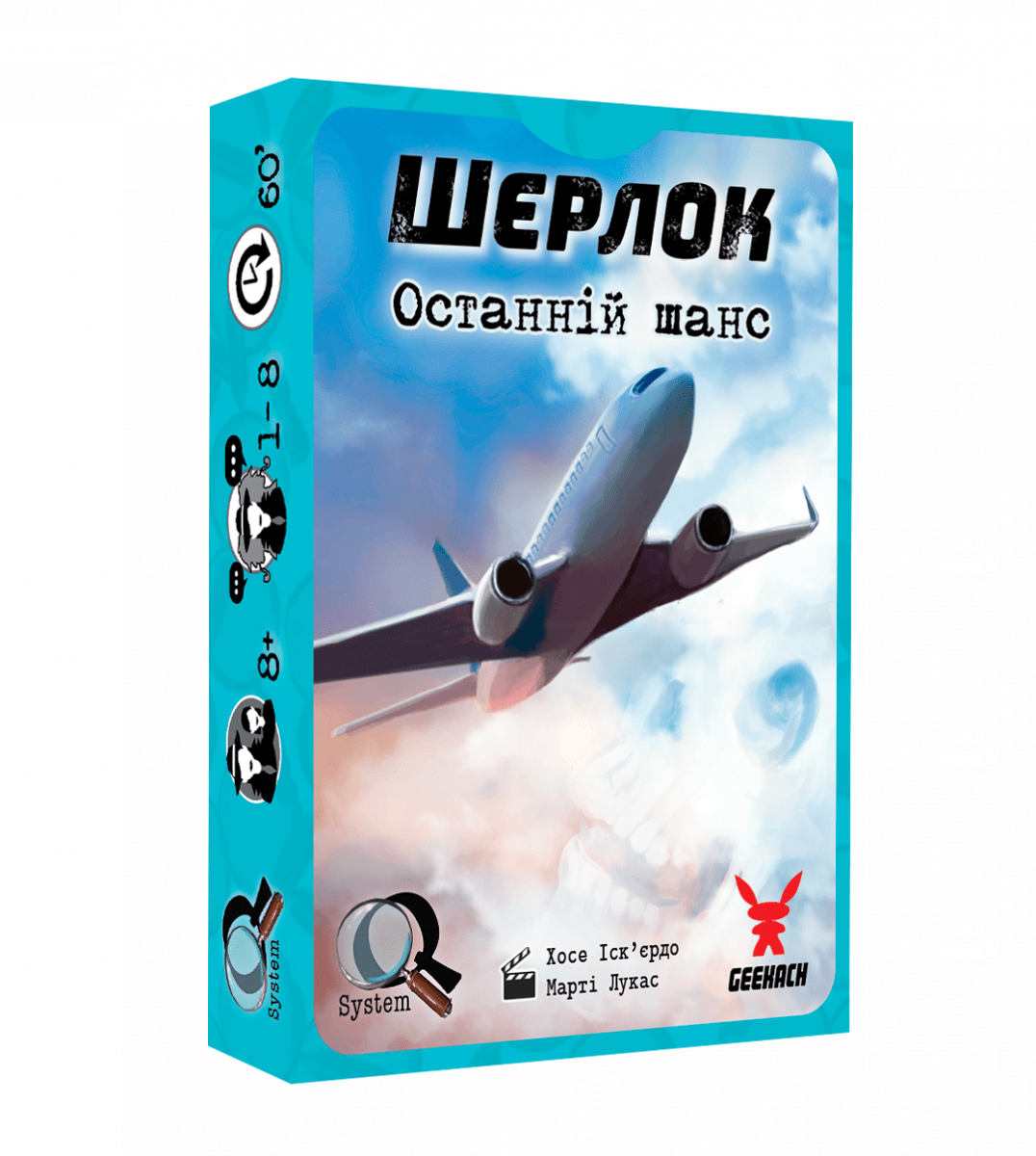 З настільною грою «Шерлок. Останній Шанс (Sherlock: Last Call UA)» Хід Конем та Geekach Games запрошують від 1 до 8 гравців на борт літака, де скоєне таємниче вбивство. Але не поспішайте впадати в паніку та одягати рятувальний жилет — після екстреної посадки спробуйте допомогти поліції розплутати цю справу.
