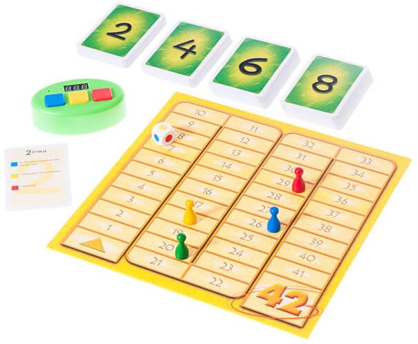 У романі Дугласа Адамса «Автостопом по галактиці» число «42» - це відповідь на головне питання життя, всесвіту і всього такого. А в настільній грі «Сорок два» - це кількість очок, яке необхідно набрати для перемоги, відповідаючи на питання. Це буде перевірка ерудиції, кмітливості та ... вміння торгуватися! Так Так. Картки з 3 видами питань бувають різної складності і охоплюють майже всі галузі знань. Якщо гравець не може відповісти, поки не закінчиться час на таймері, він може попросити допомоги у суперників, заплативши за правильний і своєчасний відповідь очками. Для того щоб отримати очки, доведеться швидко назвати, наприклад, 4 індіанських народу, 7 іменників з чотирьох букв або 4 речі, які не варто робити навіть за велику суму грошей. Безліч незвичайних питань і обмеження по часу подарують незабутні моменти, багато нових знань і справжні веселощі!