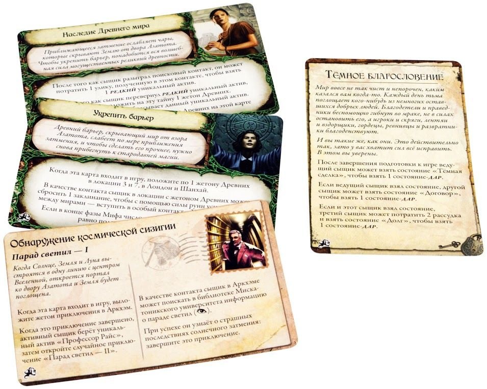 З доповненням «Древній Жах: Таємничі Руїни» в вашій улюбленій кооперативній грі на 1-8 гравців чекає новий ворог — Сизигія. Причому цього разу це не Стародавній, а космічне явище — парад планет — яке здатне опустити темряву на Землю і впустити все зло Всесвіту в нашу реальність. І це не випадково, адже Говард Лавкрафт серйозно захоплювався астрономією, тому всі шанувальники його творчості безсумнівно оцінять дану пригоду.