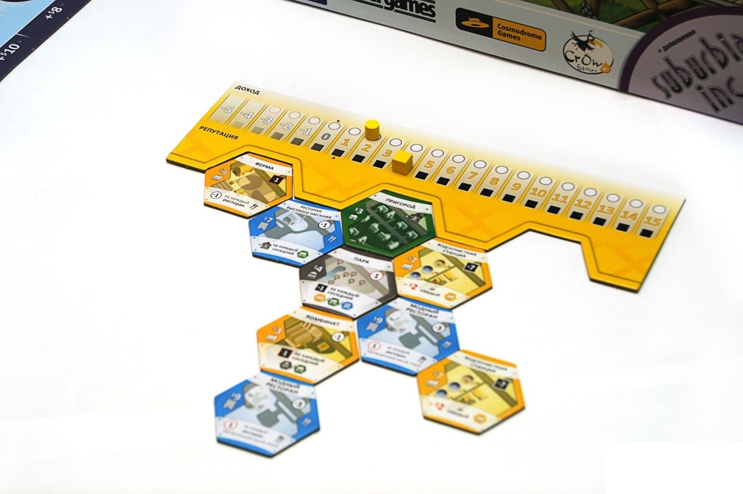 Дана російськомовна локалізація настільної гри «субурбіі (Suburbia)» порадує гравців не тільки якістю оригінальної версії, але і входить в комплект доповненням. Так, ось так, відразу. Причому доступні правила, зрозуміла інфографіка та логічність всіх дій дозволять відразу сісти і почати грати навіть новачкам в економічних містобудівних стратегіях. А продуманий режим для одного гравця особливо припаде до душі любителям соло-проходжень. Мало ігор, які однаково цікаво пройти в поодинці, «субурбіі» - чудовий екземпляр цього рідкісного виду.