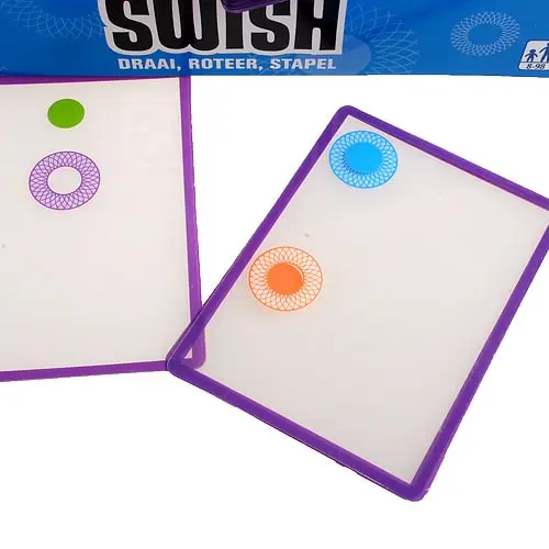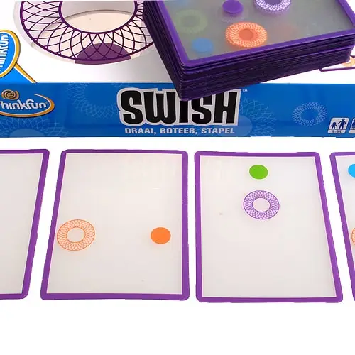 Можете уявити собі карткову гру з прозорими картами? Ні? Тоді ви точно, не грали в «свішей». Виправте це прикре непорозуміння! Адже ця гра не тільки дуже незвичайна, цікава і вчить швидко міркувати - її правила пояснюються за 5 хвилин, компактний мішечок з колодою можна взяти з собою, а віддані шанувальники знайдуться серед гравців різного віку і професій. Люди з технічним складом розуму із задоволенням виявлять логіку, творчі особистості захопляться цікавою задумкою, архітектори покажуть майстер-клас просторового мислення, та й кожен зможе знайти в ній щось собі до душі (при цьому грати можна навіть поодинці). Навіщо ж у грі «свішей» прозорі карти? На них зображені м'ячі і кільця 4-х кольорів. Виклавши на стіл 16 випадкових карт з колоди, гравці швидше суперників намагаються знайти серед них «свішей». Це звук попадання баскетбольного меча чітко в кільце, а значить, завдання в грі - в розумі знайти такі комбінації карт, де кожному кільцю буде відповідати правильний м'яч. При цьому «свішей» можна складати навіть більш ніж з двох карт - головне, щоб при перевірці пари зійшлися і по розташуванню, і за кольором. В цьому випадку гравець отримує комбінацію собі, а ось через помилки доведеться віддати чесно зароблене. Перемагає той, хто збере найбільше карт до кінця партії, а він, повірте, настане досить швидко. Адже «свішей» захоплює всю увагу гравців, і кожна партія пролітає непомітно!