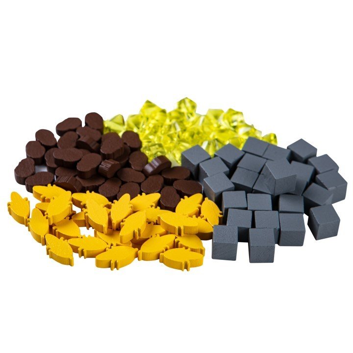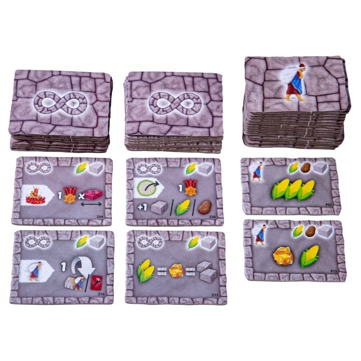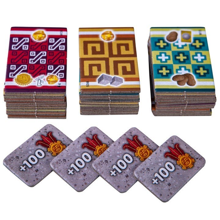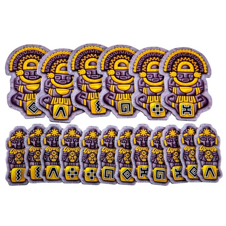 І, як і належить в євро, на вас чекає розсип дерев'яних елементів і механіка міплплейсменту в основі процесу. Причому фішок в грі дійсно багато — це і міпли, і фігурні ресурси (кукурудза, картопля — ви ж пам'ятаєте, звідки вони з'явилися у нас?), і фішки сходинок, які допоможуть вам зменшити вартість розміщення робочого, і багато іншого. Але на відміну від інших євро, в «Тауантинсуйу. Империя инков» кожен міпл (в залежності від кольору) буде мати свою спеціалізацію, а один раз розміщений на ігровому полі, залишається на цьому місці до кінця партії.