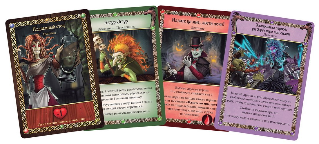 Відома Таверна «Червоний Дракон» знову гостинно відчиняє свої двері, але цього разу для справжніх лиходіїв. Інтернет-магазин настільних ігор Ход Конем із задоволенням пропонує нову версію улюбленої настілки, в яку можна зіграти як в самостійну гру, а можна змішати нові колоди з тими, що вже є у вашій колекції з цієї серії. У нас ви можете купити випуск «Таверна «Красный Дракон»: Злодеи (Таверна «Червоний Дракон»: Лиходії)» та насолодитися новими колоритними фентезійними персонажами. Тут на вас чекають відьма Даарека Гроза розуму, ельфійська мумія Амундир Проклята, людина-вампір Барон фон Владло і сам король гоблінів Торглснарф Данкельтонський. Кожен зі своїми особливими картами та вміннями, між іншим!