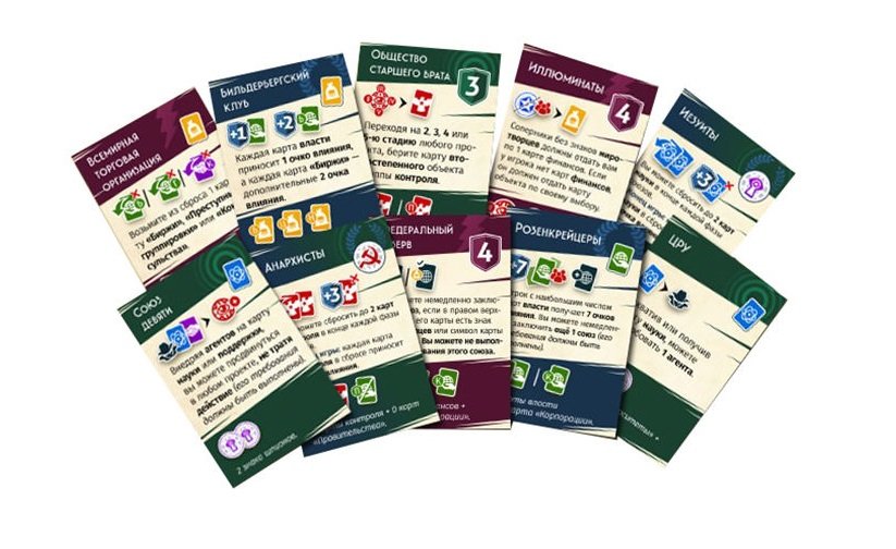З базовою грою «Тайная власть. Новый мировой порядок» ви також відразу отримаєте доповнення «Професіонали», яке введе в гру карти фахівців різного профілю і ще більше збільшить реіграбельність цієї чудової стратегії. Додайте до цього глибокий ігровий процес на ряду з простими правилами, стильне оформлення і цікаву тему — отримаєте чудову гру для дорослих членів сім'ї, компанії друзів і таємних організацій.