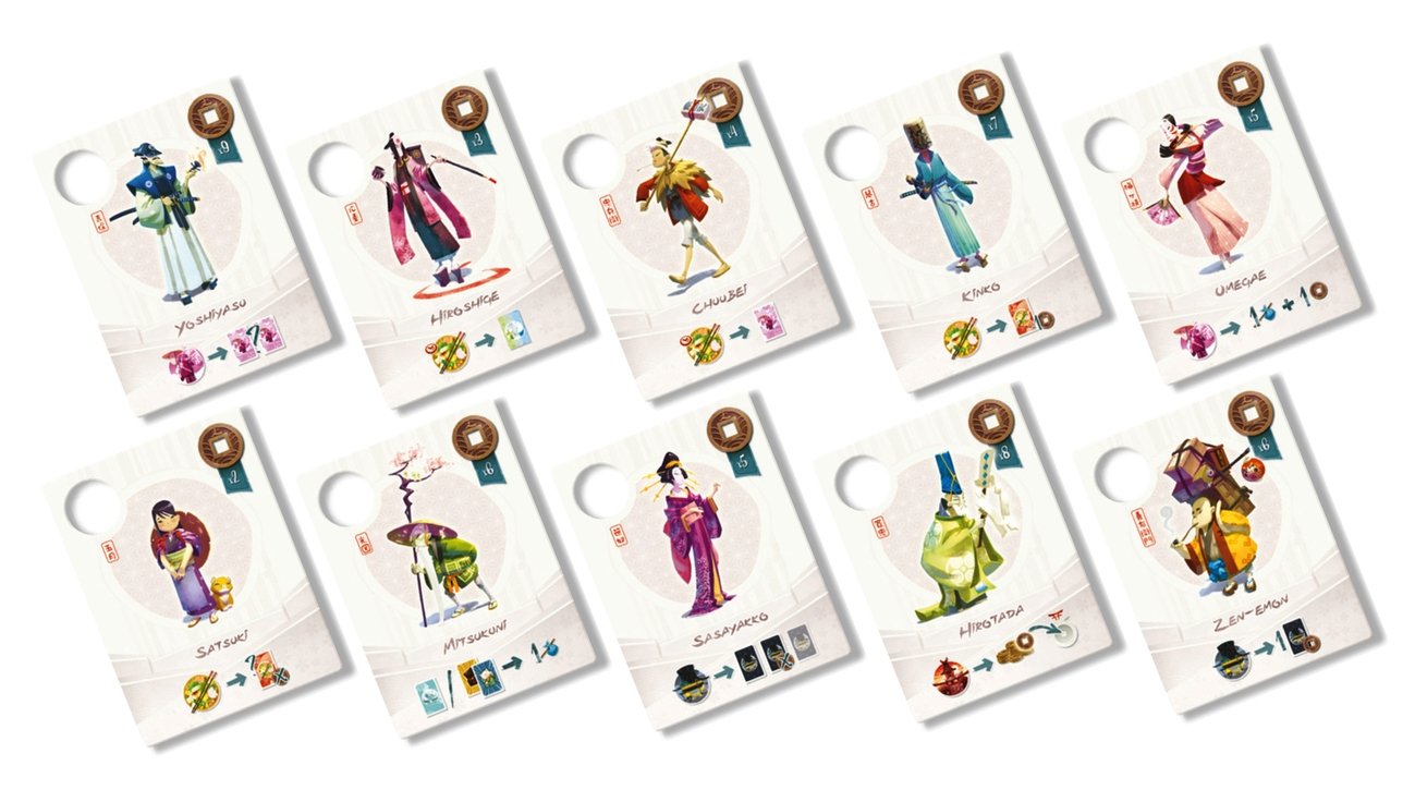 Починається подорож з вибору мандрівника. Гравці наосліп беруть на руки по 2 карти мандрівника і вирішують за кого з них вони будуть грати. Кожен мандрівник володіє унікальними, характерними тільки йому властивостями і певною кількістю стартових грошей. Коли все вибрали своїх персонажів, перший хід починає гравець, що стоїть найдалі від мети. Гравець на вибір може переміститися в будь-яку локацію, що передує найближчому готелю і «покуштувати» властивих йому вражень. На великій японській дорозі вам зустрінуться: