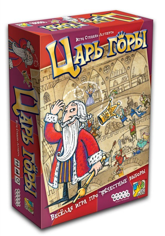 «На жаль, пора на спочинок», - вирішив цар-батюшка Симеон Ігнацій Юстиніан XIV. «Ну нарешті!», - подумали придворні. Адже всім, від пажа до мага, не терпілося зайняти трон. Святе місце порожнім не буває, а в настільній грі «Цар гори» - ще й три рази за партію. Допоможіть своїм фаворитам обігнати суперників, пройти 6 поверхів палацу і всістися в затишне царський крісло, а гра обіцяє море інтриг і веселощів! Жетони 13-ти придворних по черзі розміщуються гравцями на рівнях палацу, але не більше 4-х жетонів на одному. У кожного гравця є таємний список 6 своїх фаворитів, і це значить, що чиїсь інтереси перетнуться. Просуваючи по одному жетону на верхні рівні так, блеф в передвиборне гонці ніхто не відміняв, завдання - дістатися до тронного залу, де восторжествує демократія і всі гравці таємно проголосують за царя. Одностайне «за» ознаменує кінець раунду і підрахунок очок, з огляду на розташування фаворитів кожного. При цьому, для особливо шкідливих - кількість карт «проти» обмежена. Результати трьох раундів покажуть, хто досвідчений інтриган, а хто, на жаль, продовжить чистити стайні. Може, наступного разу ти станеш Царем Гори?