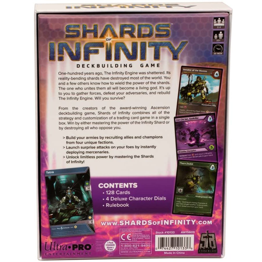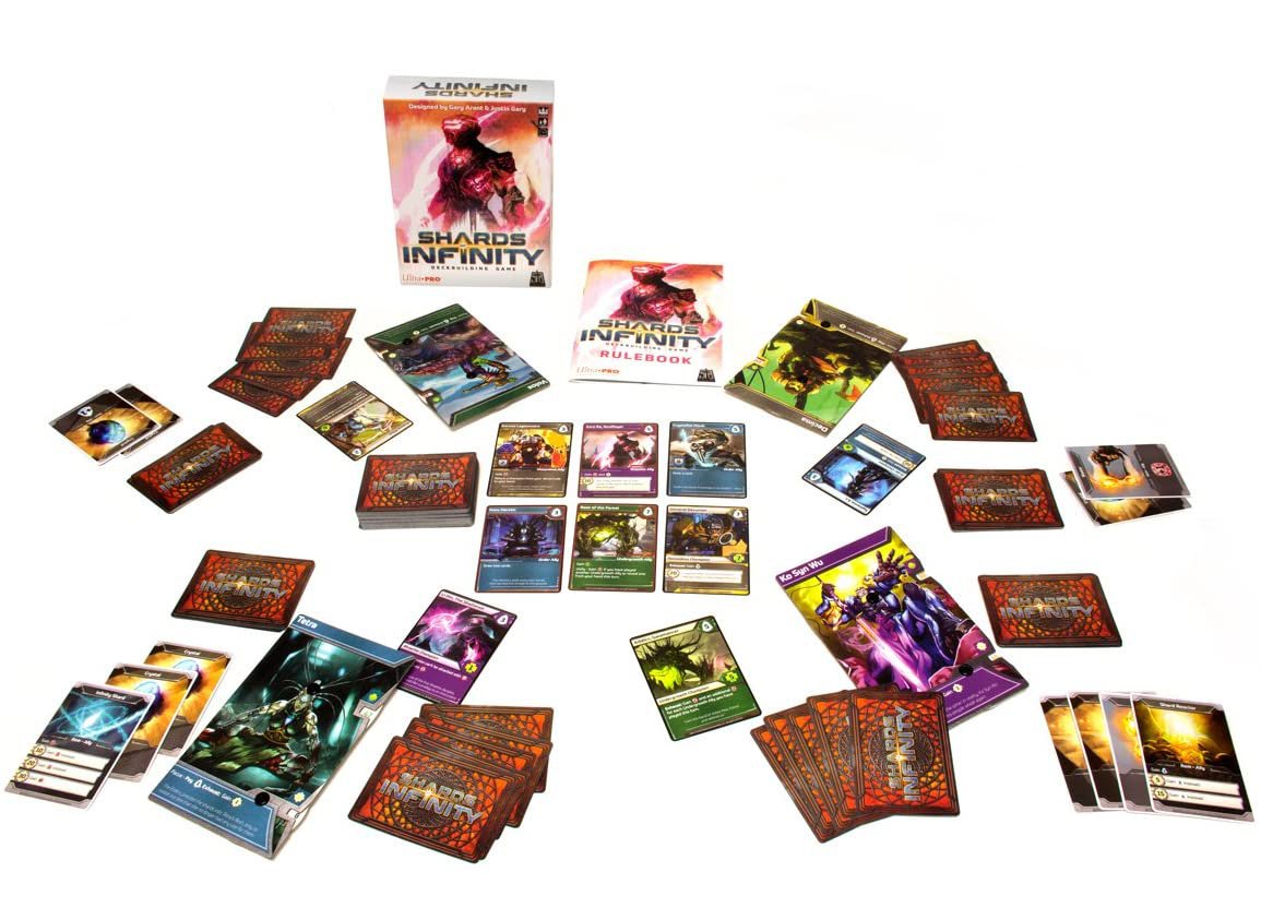 Колодобудівна стратегія Shards of Infinity (Уламки Нескінченності) поєднує в собі чарівні ілюстрації, стратегічну глибину і реграбельність у невеликій коробці. Причому, на відміну від багатьох ігор з механікою декбілдингу, вам не потрібно буде змагатися за очки — гравці намагатимуться пережити своїх супротивників і звести їхнє здоров'я нанівець. Почавши партію з базовим набором карт, ви зможете у свій хід купити нові карти з центру столу і додати їх у свою колоду або негайно розіграти, якщо це карти Найманців.