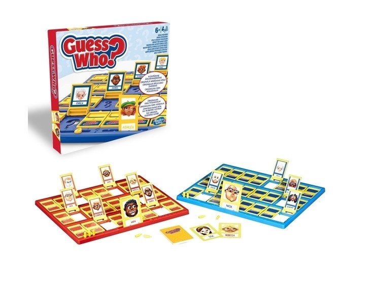 Чудово, що компанія Hasbro об'єднала все це і створила настільну гру «Вгадай хто»! У ній є два листових полотна з персонажами (людей або тварин - на вибір), які вставляються в пластикові ігрові дошки з безліччю віконець. Ці планшети можна взяти в руки або з'єднати, поставивши на столі, щоб сісти один навпроти одного. Зверху планшета гравець покажчиком обирає собі героя, а всі віконця з персонажами знизу відкриває.