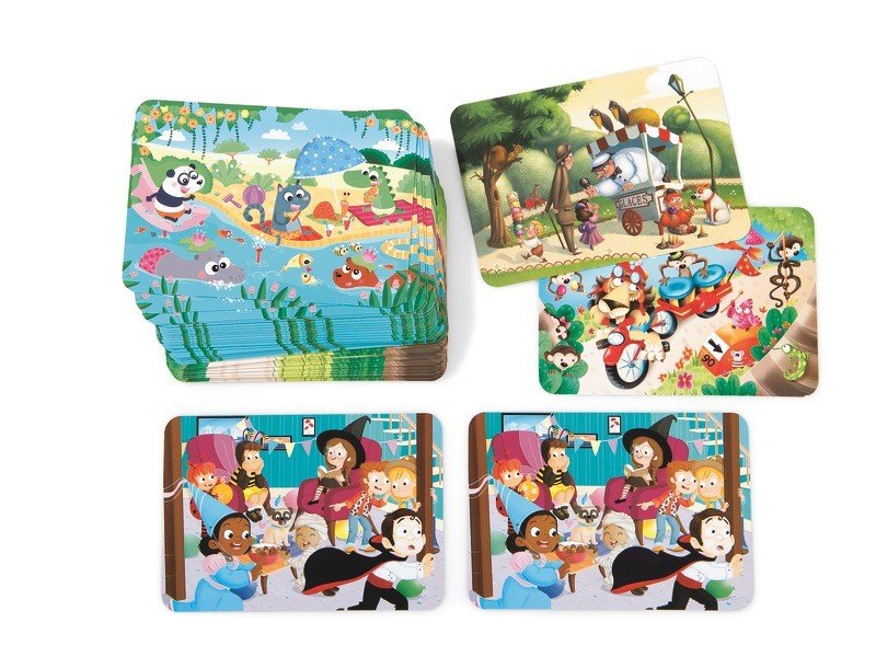 Ця настільна гра в симпатичній жерстяній коробці порадує вас не тільки низькою ціною, а дітей — барвистим оформленням, а й захоплюючим змістом. Адже в ній ви знайдете двосторонні карти з яскравими картинками на 4 теми різного рівня складності. На кожен сюжет приходиться 25 карт зовні практично однакових, але з невеликими відмінностями. Саме відмінності належить шукати юним гравцям, намагаючись обігнати в цій справі своїх суперників. Зробити це не так просто, особливо, коли час підганяє, а картинка змінюється в ході гри, тому у цю азартну розвагу із задоволенням включаться навіть батьки.